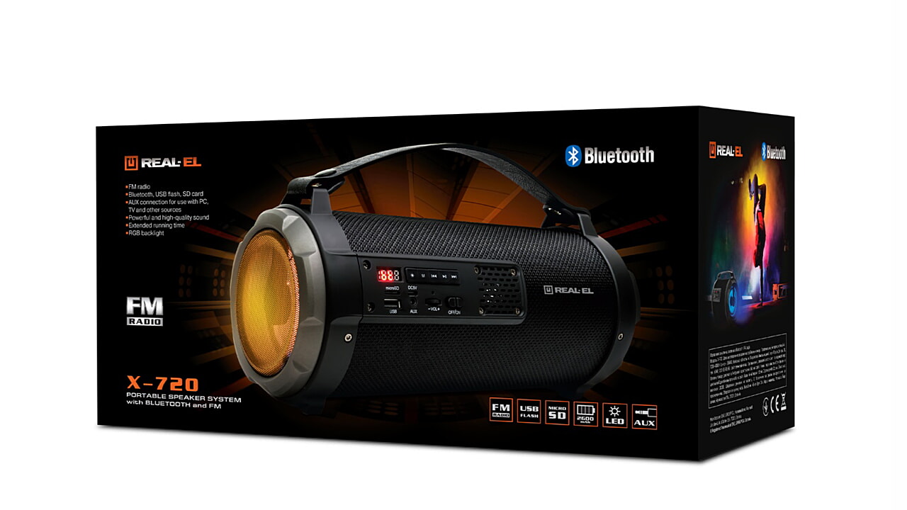 REAL-EL X-720 portable speaker system with many functions! Take it and have fun with your friends on your party!