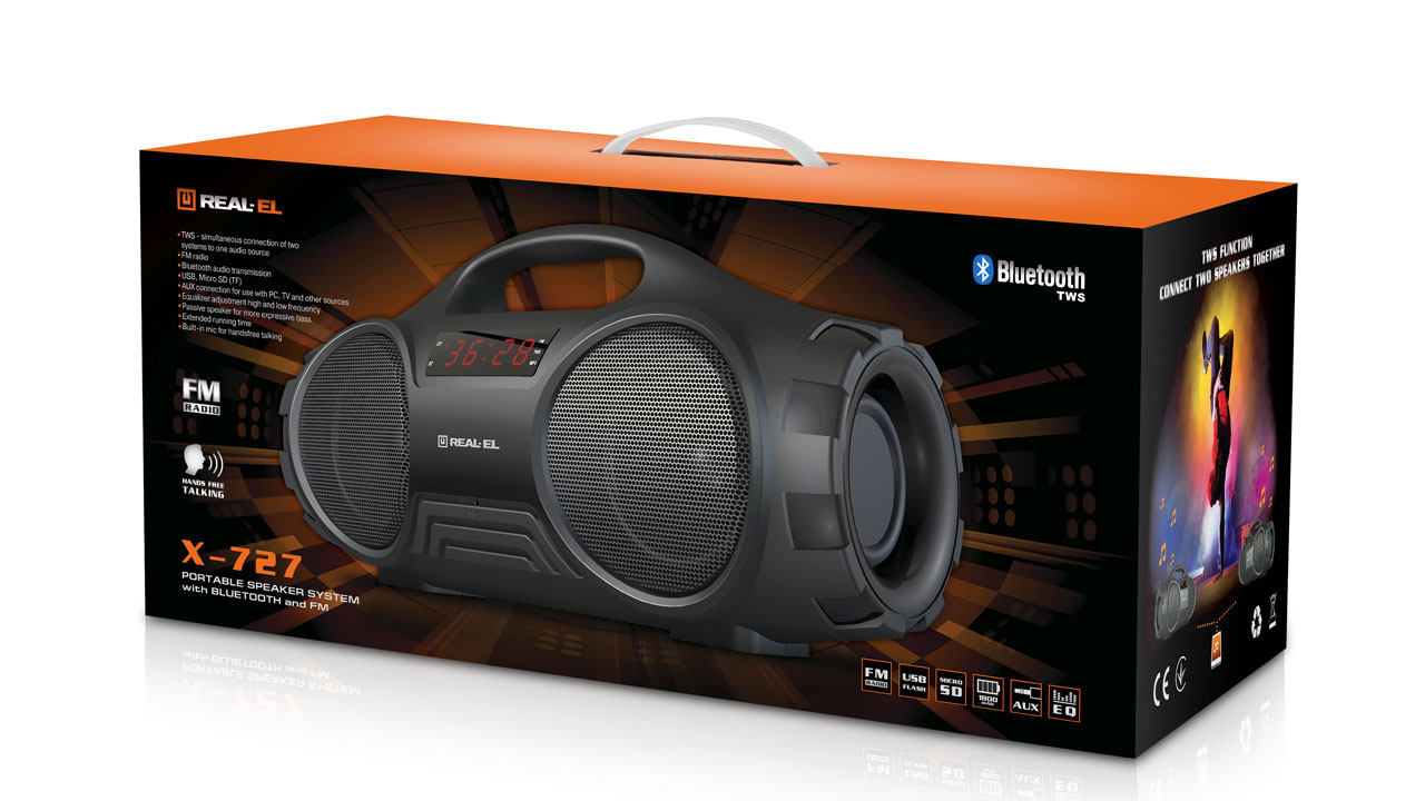 REAL-EL X-727 portable speaker system with many functions! Take it and have fun with your friends on your party!