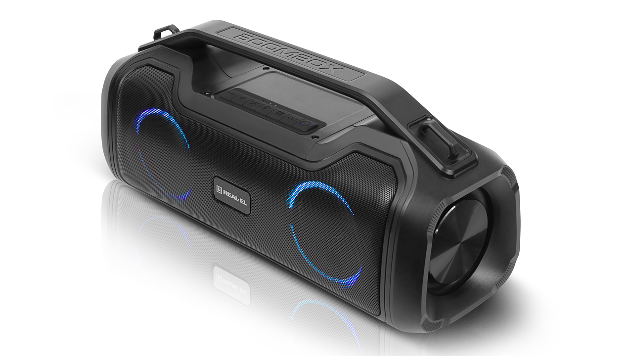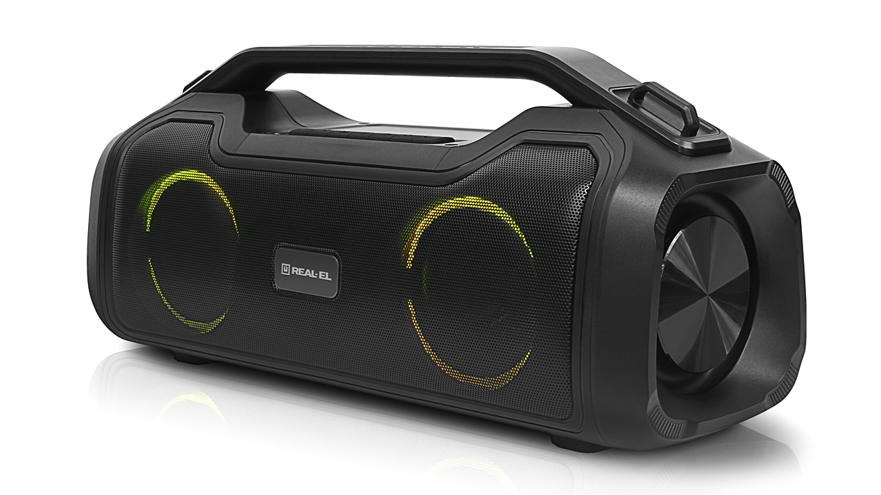 REAL-EL X-747 is a stylish, powerful boombox with RGB lighting, TWS functionality, and a built-in equalizer.