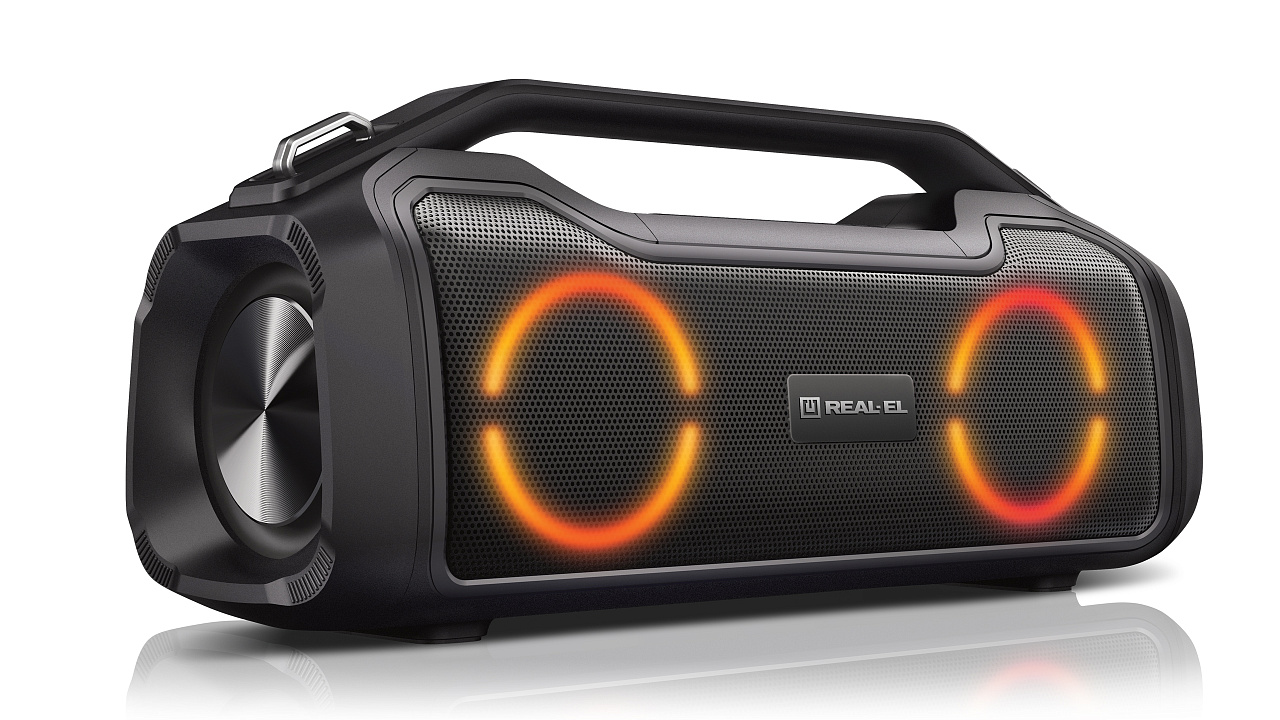REAL-EL X-747 multimedia portable acoustic system features a modern design and high-quality sound.