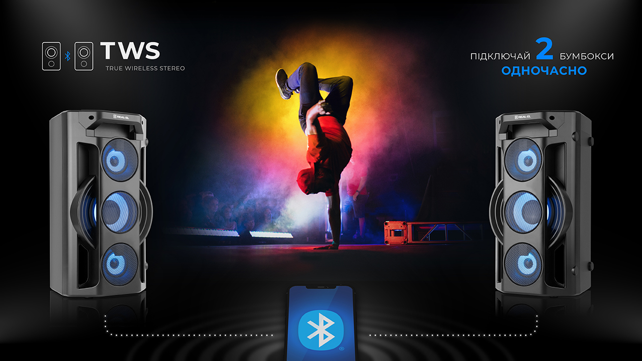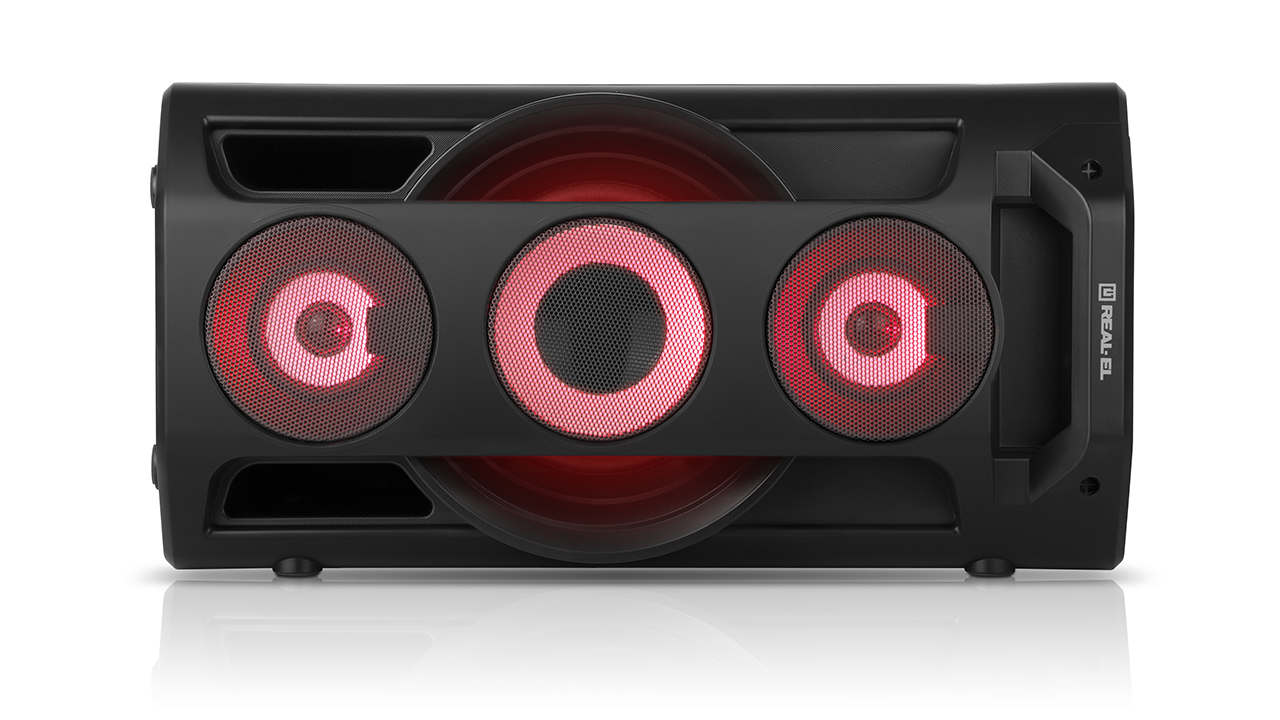 REAL-EL X-777 multimedia portable acoustic system features a modern design with high-quality sound. Its extensive functionality allows for music playback by connecting mobile devices, PCs, TVs, laptops, etc., both through an AUX output and via Bluetooth. USB and Micro SD card slots enable audio file playback from flash drives.