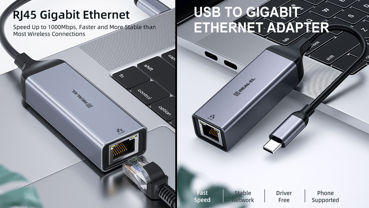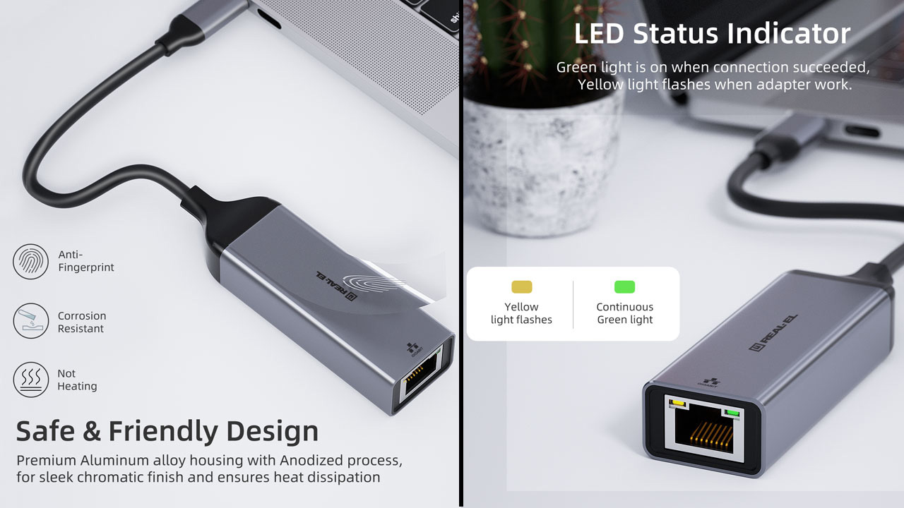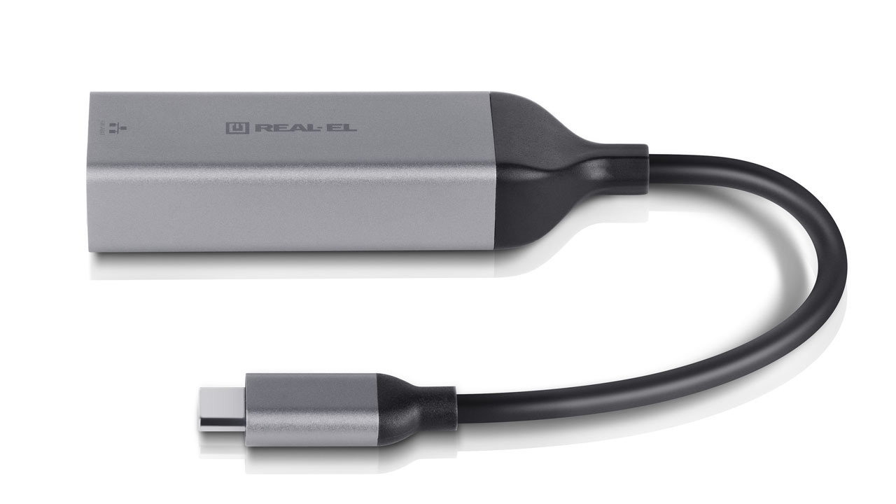 The REAL-EL CE-150 Adapter (Type C - Ethernet) is designed for use with all devices equipped with a Type C port and supporting all necessary data transmission protocols.