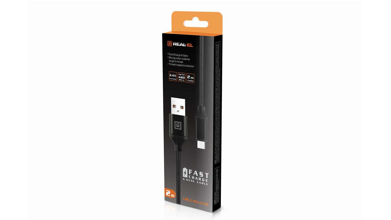 The REAL-EL Premium USB A - Micro USB Fabric cable is designed for connecting digital devices for charging and data transfer.