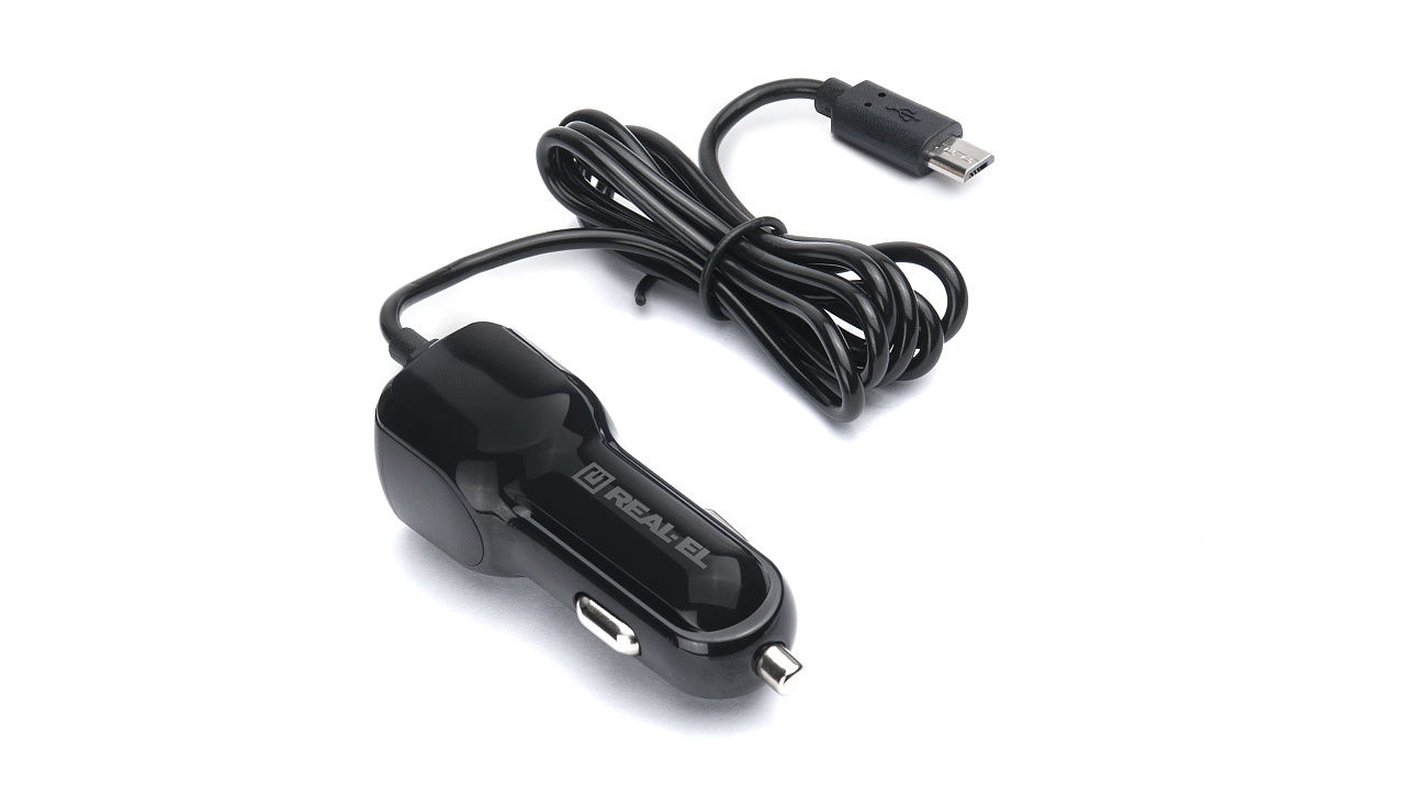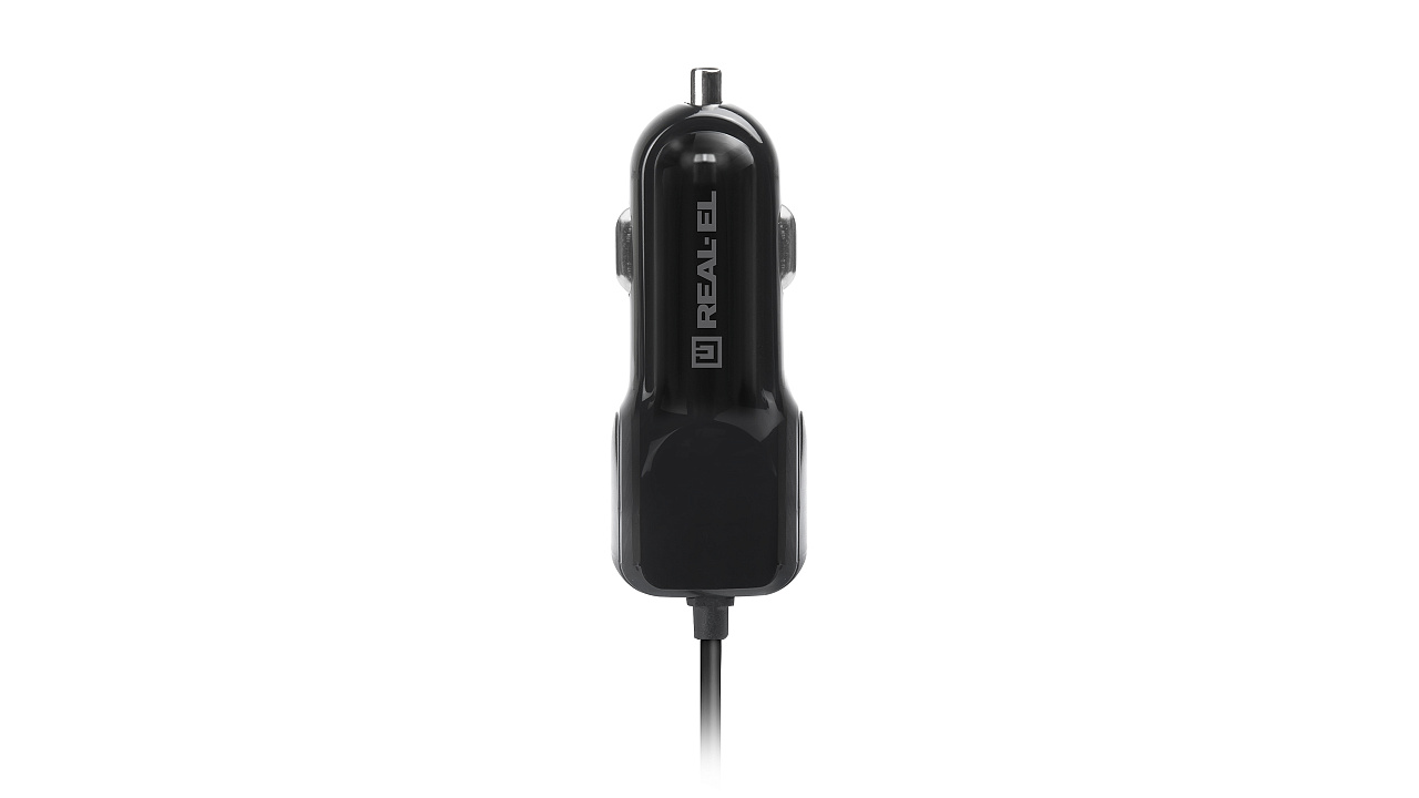 The REAL-EL CA-15 car USB charger with two outputs is designed to power and charge the batteries of portable devices (mobile phones, smartphones, GPS navigators, MP3 players, PDAs, tablet computers, and other digital devices) via the car's cigarette lighter socket.