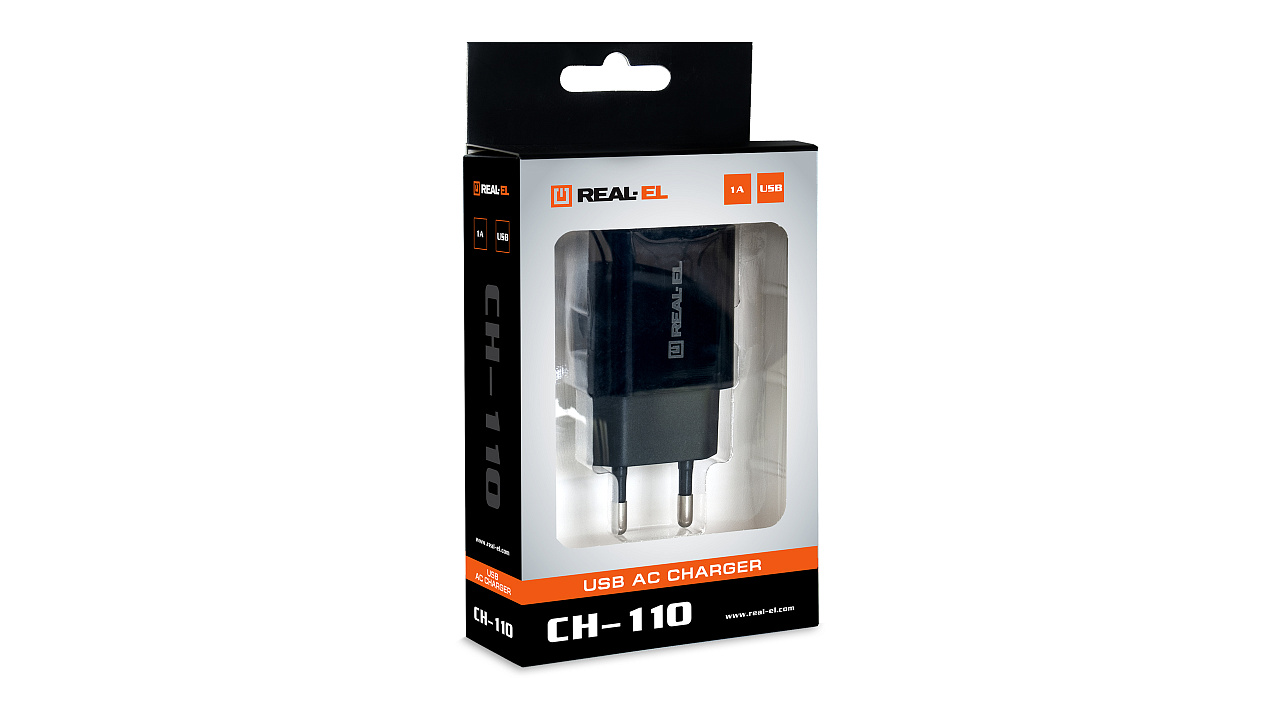 The REAL-EL CH-110 USB network charger is designed for charging batteries of portable devices (mobile phones, smartphones, MP3 players, PDAs, tablet computers, and other digital devices), as well as powering portable speakers from the household power supply.