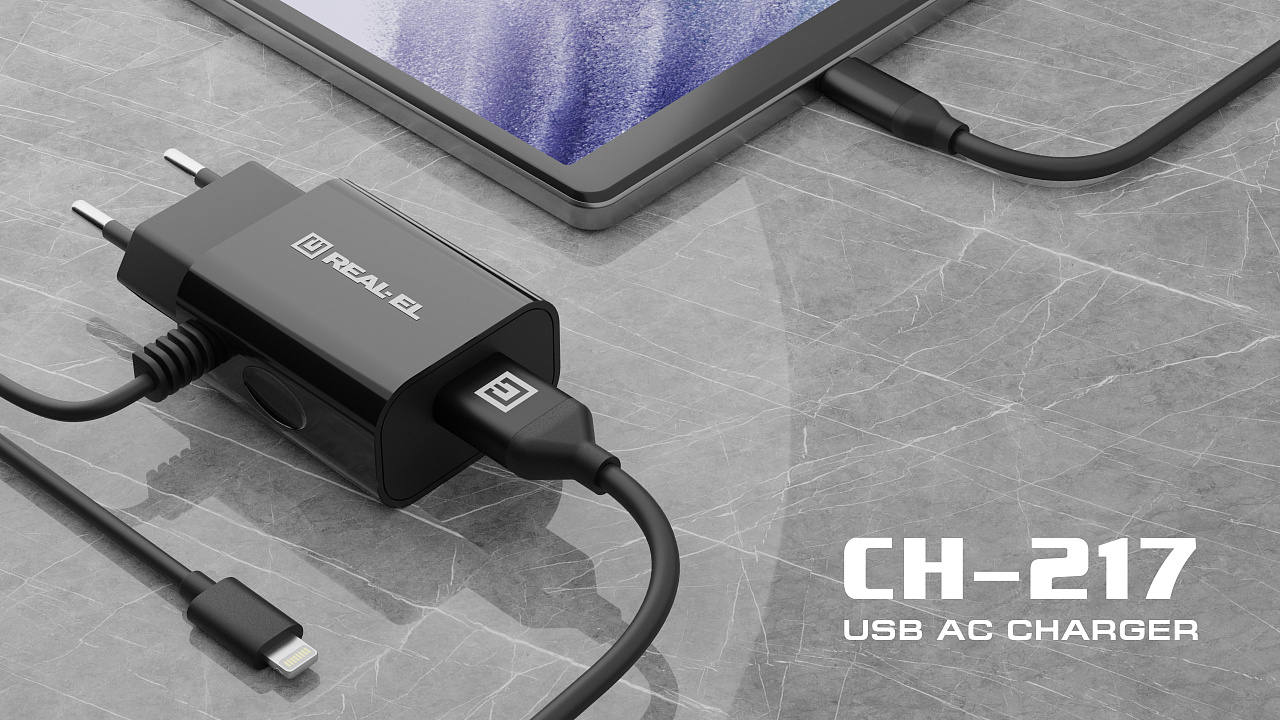 The REAL-EL CH-217 USB network charger is designed for charging batteries of portable devices (mobile phones, smartphones, MP3 players, PDAs, tablet computers, and other digital devices), as well as powering portable speakers from the domestic power supply.