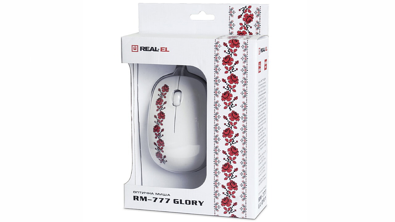 High-precision optical technology enables REAL-EL RM-777 Glory optical mouse to operate practically on any surface. It has the following features: 2 + 1 buttons, perfect Ukrainian shapes and elegant style, scroll wheel, USB interface, natural shape of the mouse comfortable for the hand.