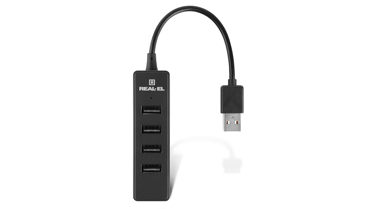 REAL-EL HQ-154 USB 2.0 HUB is designed to extend and increase the number of USB ports with the ability to use all of them simultaneously. It can be used with all devices that have the ability to connect via USB-A port.