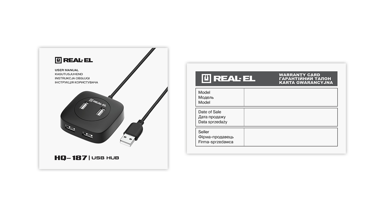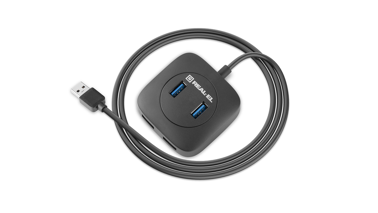 REAL-EL HQ-187 USB 3.0 HUB is designed for extension and multiplication of USB ports with possibility to use all of them at the same time. Can be used with all types of docking devices that can be connected via USB-A port.