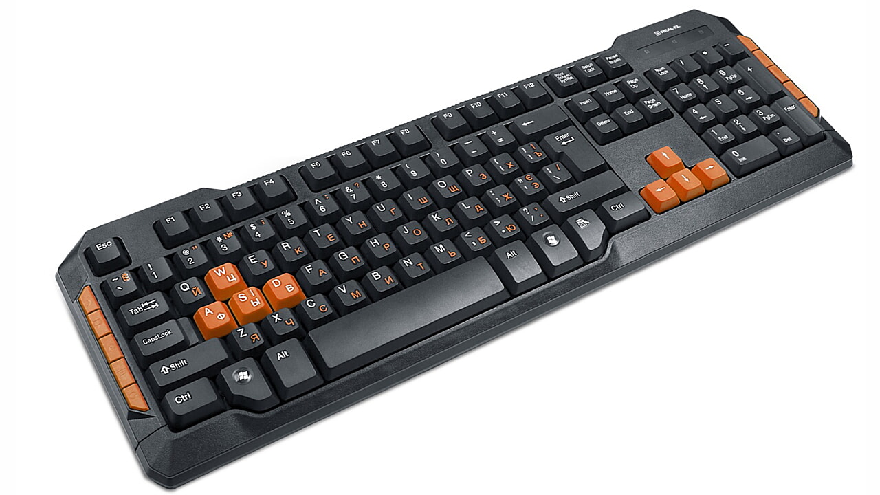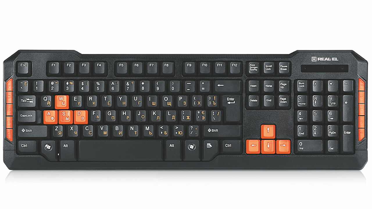 The REAL-EL Gaming 8500 gaming keyboard has the following features: ergonomic gaming design, 10 shortcut buttons for Internet and Multimedia, 8 additional replaceable key caps for gaming included, low operation noise, quiet and precise keystroke.