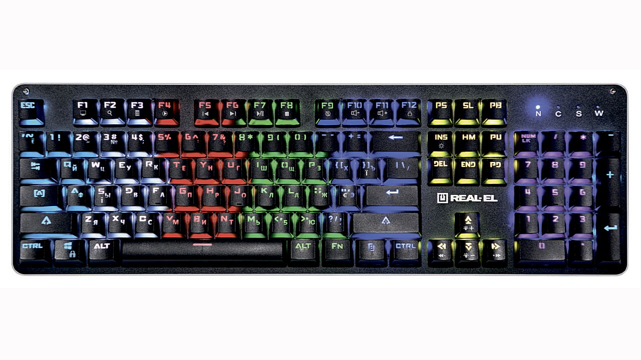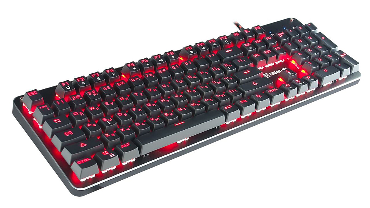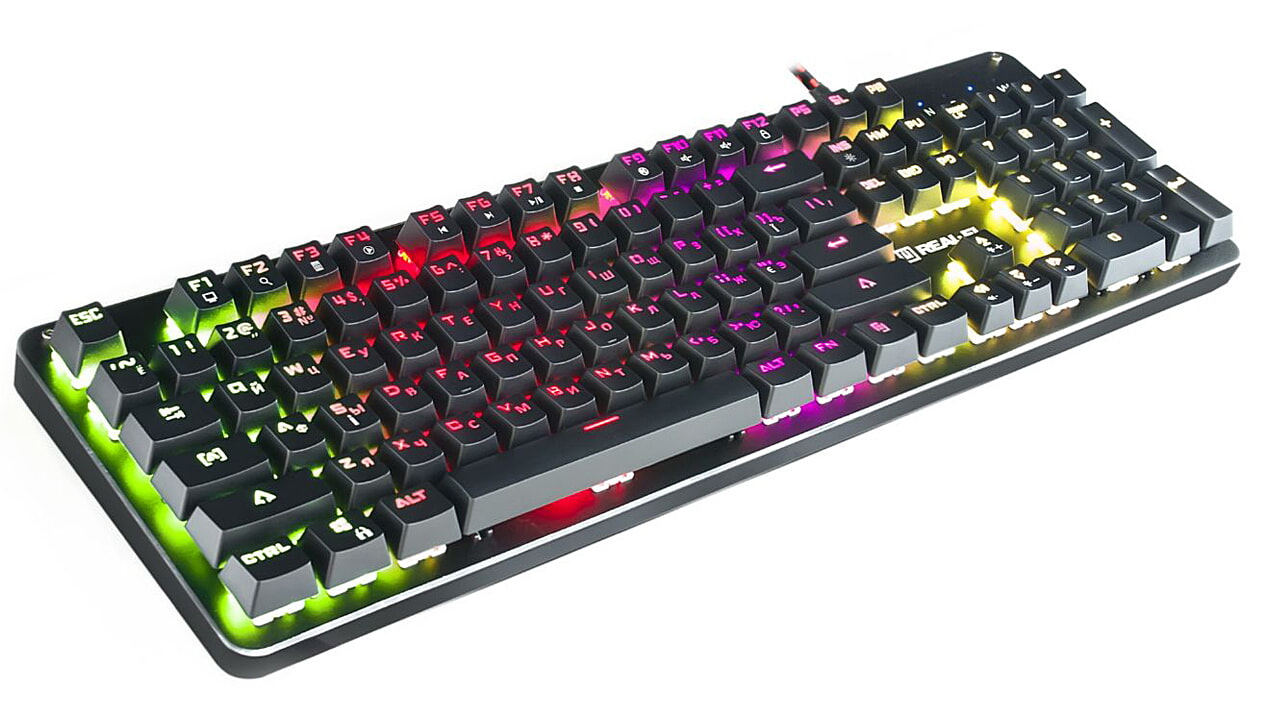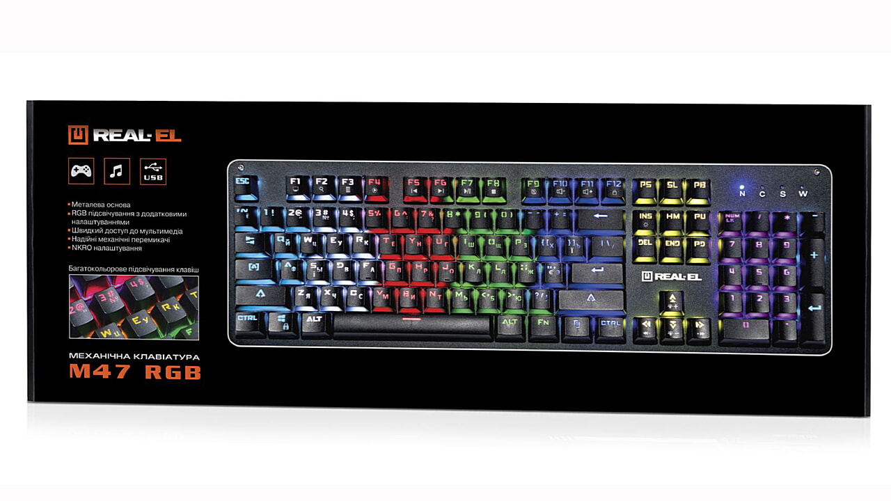 Metal base, RGB adjustable backlit, reliable mechanical switches, quick access to multimedia and NKRO settings are the features of the GAMING MECHANICAL KEYBOARD REAL-EL M47 RGB.