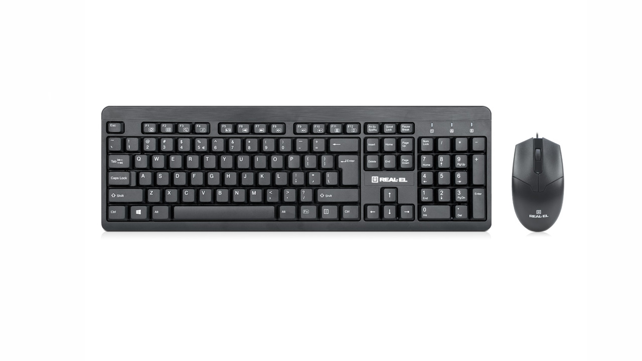 Ergonomic design, standard layout, high-quality membrane, USB interface, comfort, optical mouse has 1200 dpi resolution, quiet and clear keystroke are the features of the REAL-EL Standard 504 Kit EN standard keyboard + mouse kit.