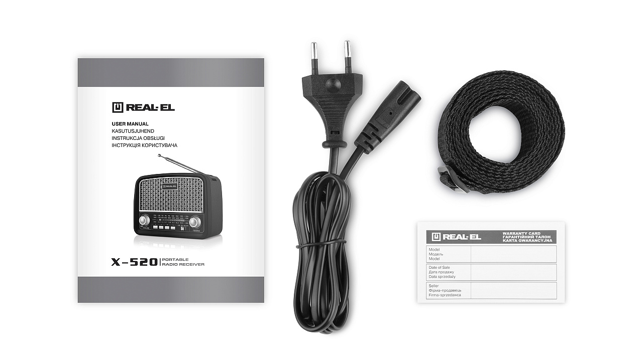 The portable radio receiver REAL-EL X-520 is an excellent companion for trips, travels, and walks, as well as a great companion at home and work. In addition, you can take your favorite FM radio stations anywhere. The receiver model also includes modern options, namely playback from USB flash and microSD card media, as well as a headphone jack.