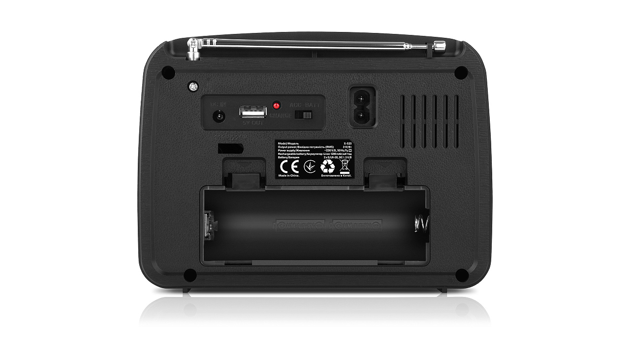 The built-in lithium-ion battery ensures a long operating time for the radio receiver. For extended nature vacations, there is an additional compartment for batteries. And for those who love comfort and home coziness, it is powered by a standard 230V network.