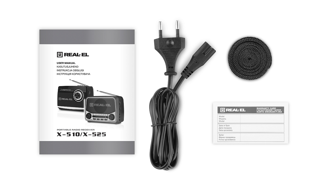 The portable radio receiver REAL-EL X-525 is an excellent companion for trips, travels, and walks, as well as a wonderful companion at home and work. In addition to being able to take your favorite FM radio stations anywhere, the receiver model includes modern options: playback from USB flash and microSD card media, and a built-in flashlight. The built-in lithium-ion battery provides a very long operating time for the radio receiver.