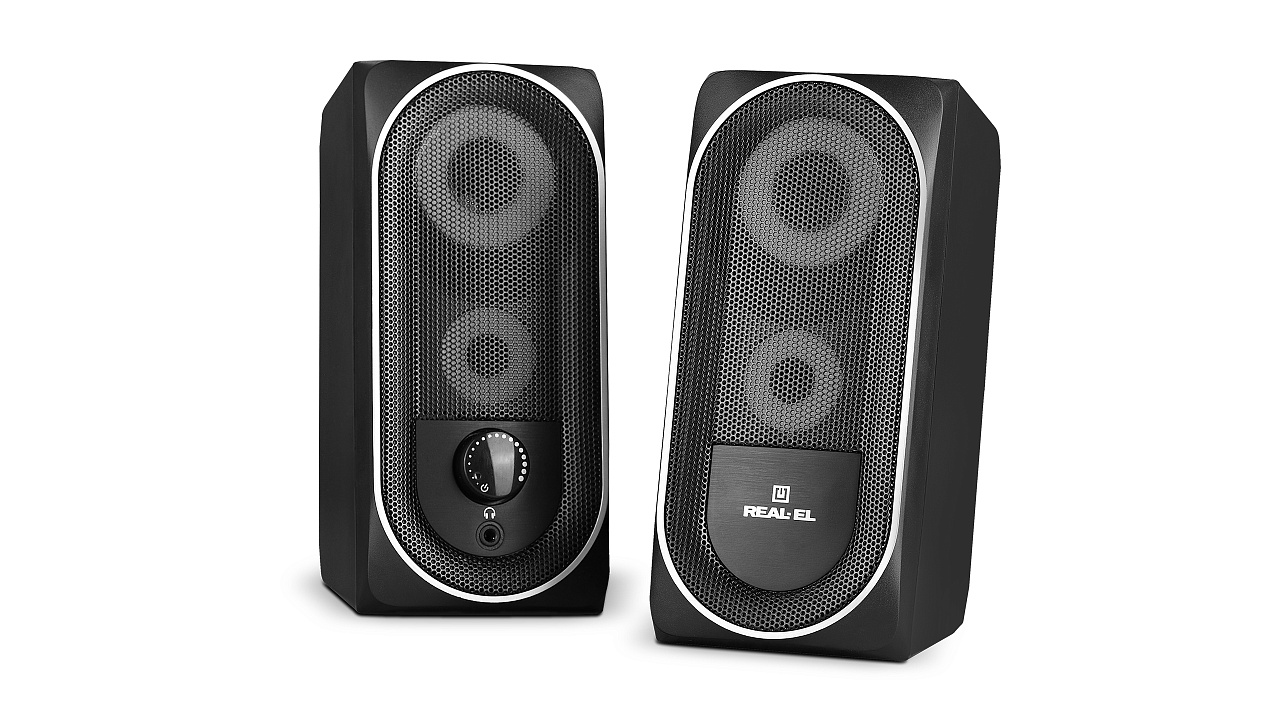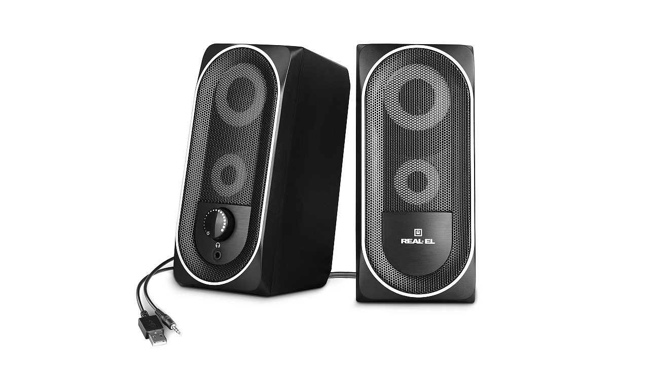 REAL-EL S-110 multimedia USB acoustic system is an easy and accessible solution for soundtracking your computer (laptop). The acoustic system is equipped with built-in amplifiers, acoustic and signal cables, allowing it to be connected to virtually any audio source.