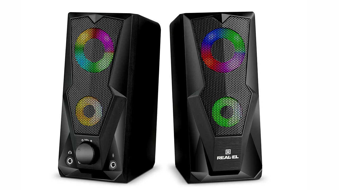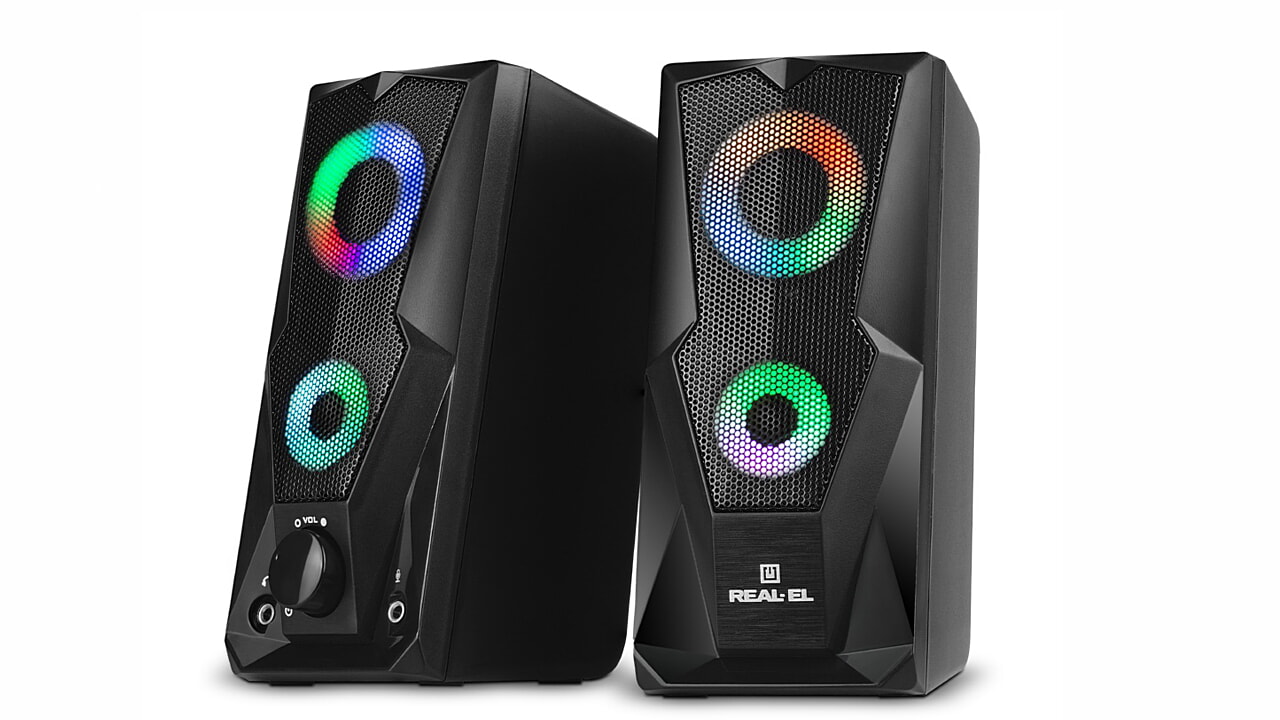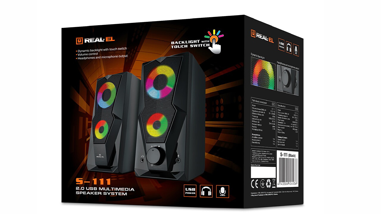 REAL-EL S-111 multimedia USB acoustic system is an easy and accessible solution for soundtracking your computer (laptop). The acoustic system is equipped with built-in amplifiers, acoustic and signal cables, allowing it to be connected to virtually any audio source.