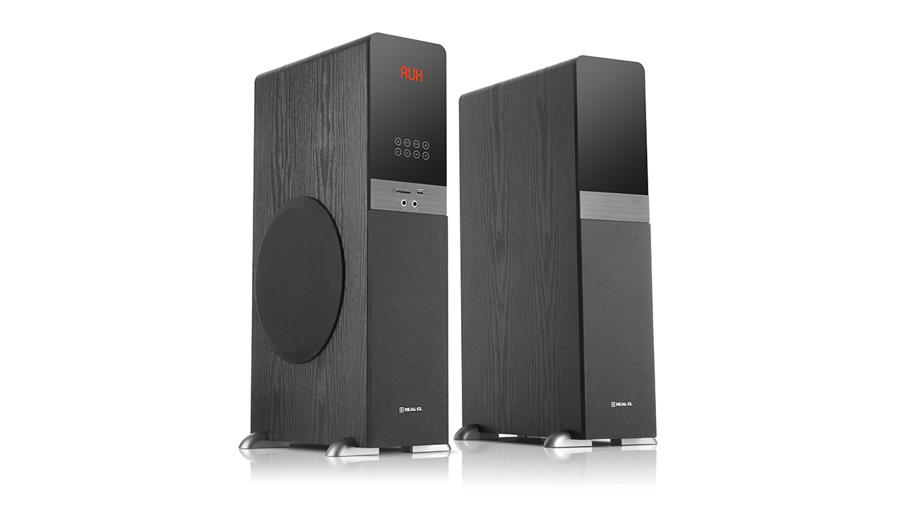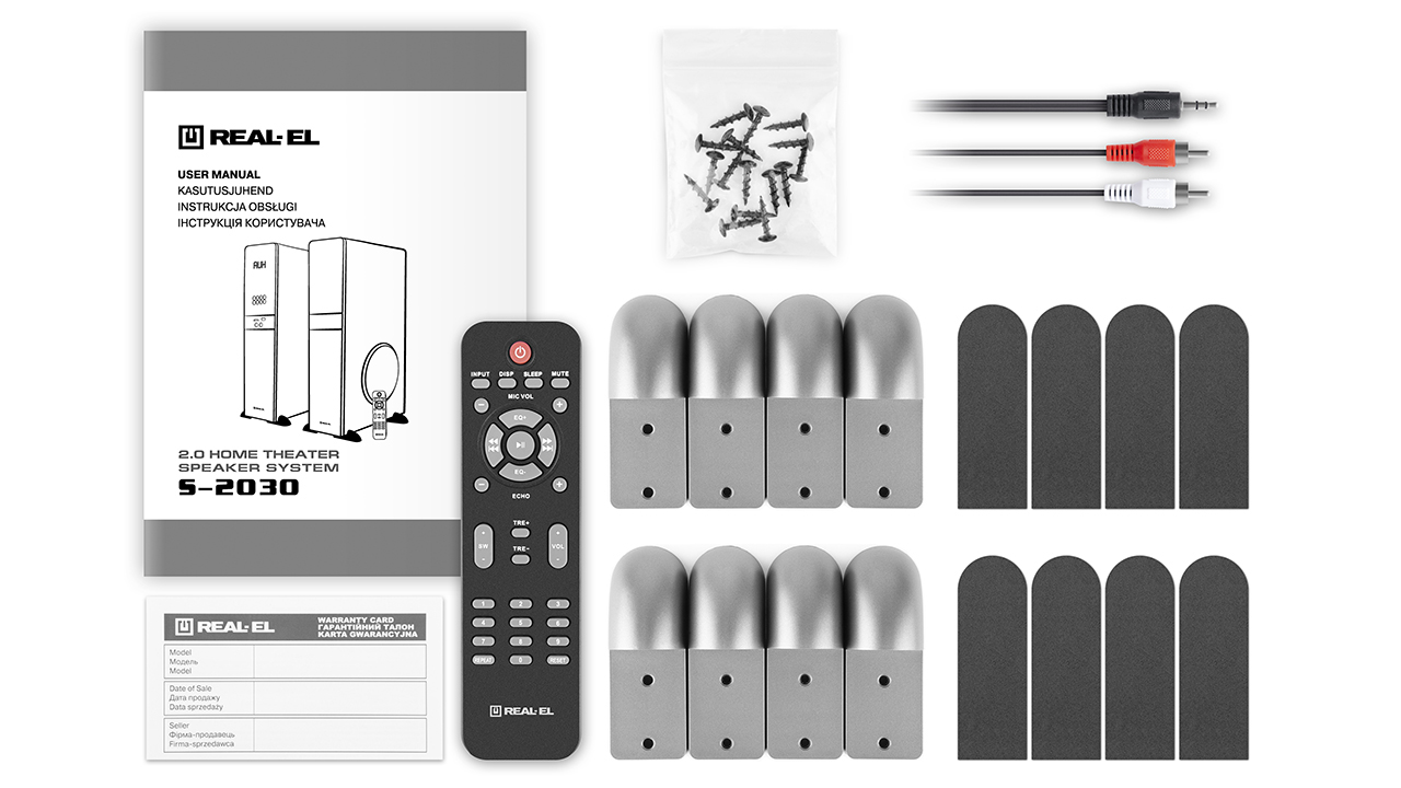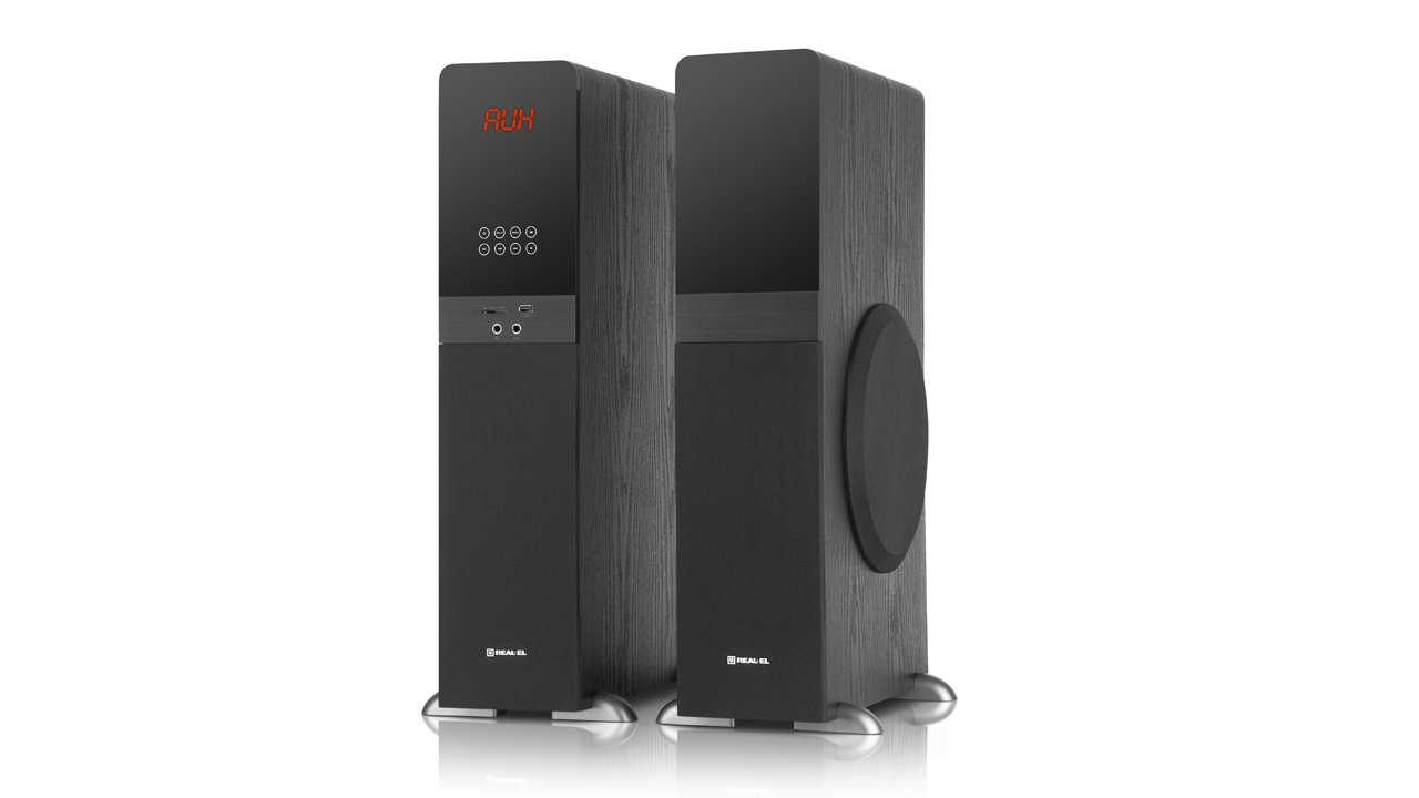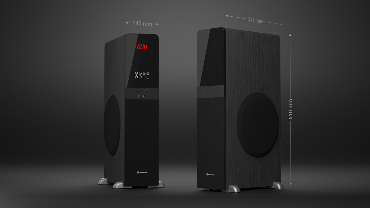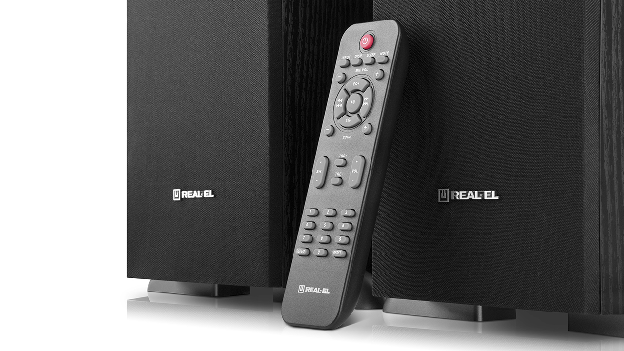 In the modern world, it is entirely possible to set up a home theater at home. Our new product, REAL-EL S-2030, is perfect for connecting to a television. The high, mid, and low-frequency speakers provide 70 Watts of power and are designed to reproduce high-quality sound in a home environment. Additionally, the acoustic system can be connected to virtually any modern audio source without the need for an additional power amplifier, features a built-in USB player, SD CARD (MMC), and virtually no restrictions on the type of connection, including the popular BLUETOOTH (EDR+5.0 version). An optimized crossover is provided to improve sound clarity, three active speakers for reproducing the full frequency spectrum, coaxial and optical input. If you wish to customize the sound to your liking, you can use the built-in equalizer. Singing enthusiasts haven't been forgotten either; they will be delighted with two microphone inputs for KARAOKE. The design of the REAL-EL S-2030 will become a perfect part of the room's interior, and convenience has also been considered – a full-featured remote control is included in the package.