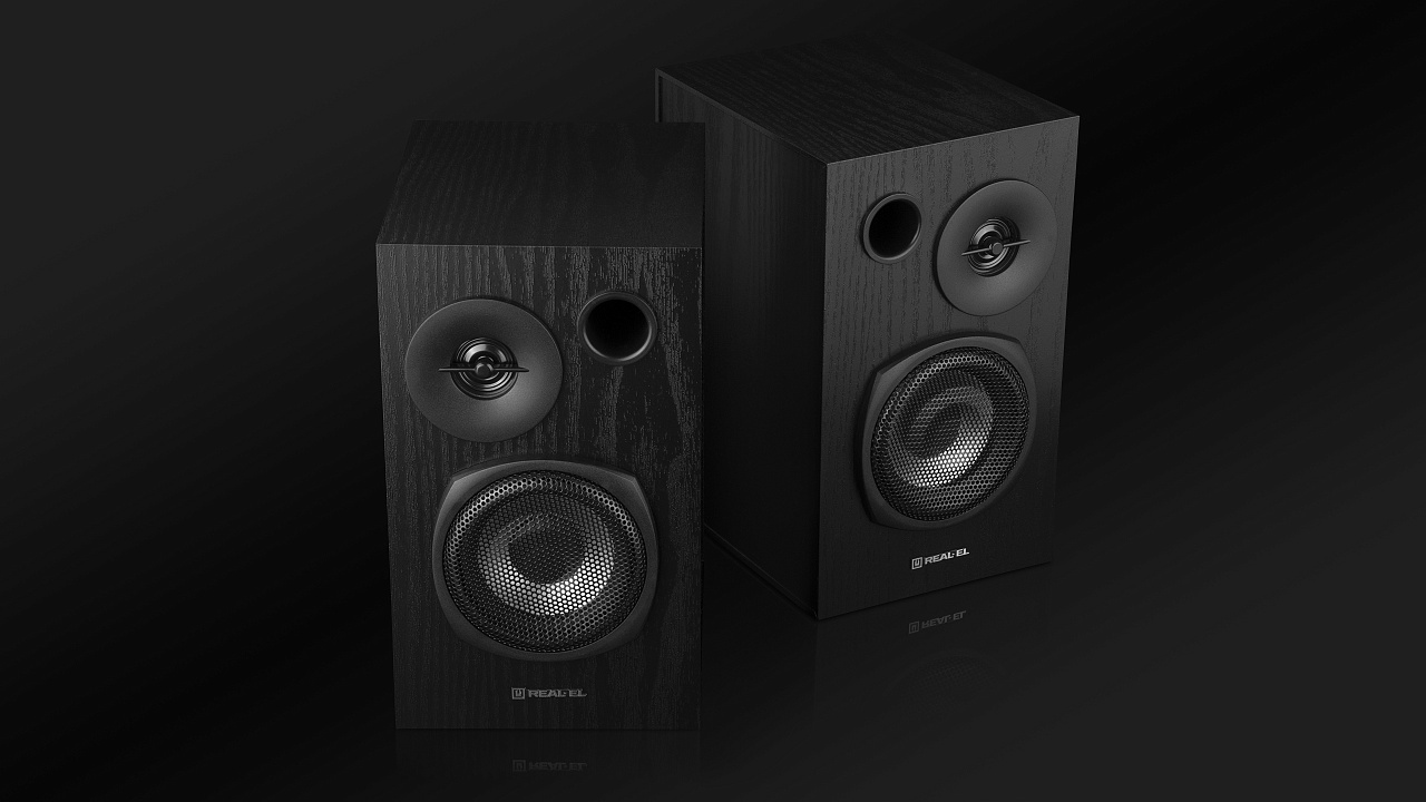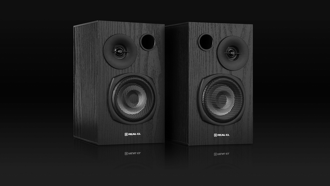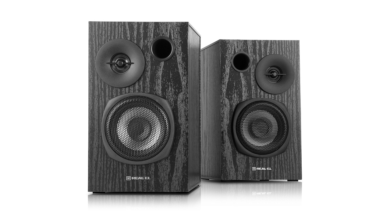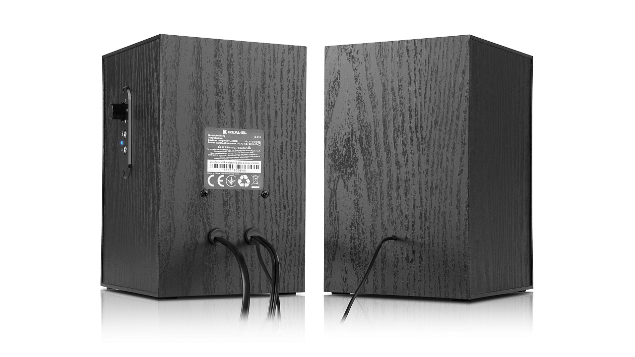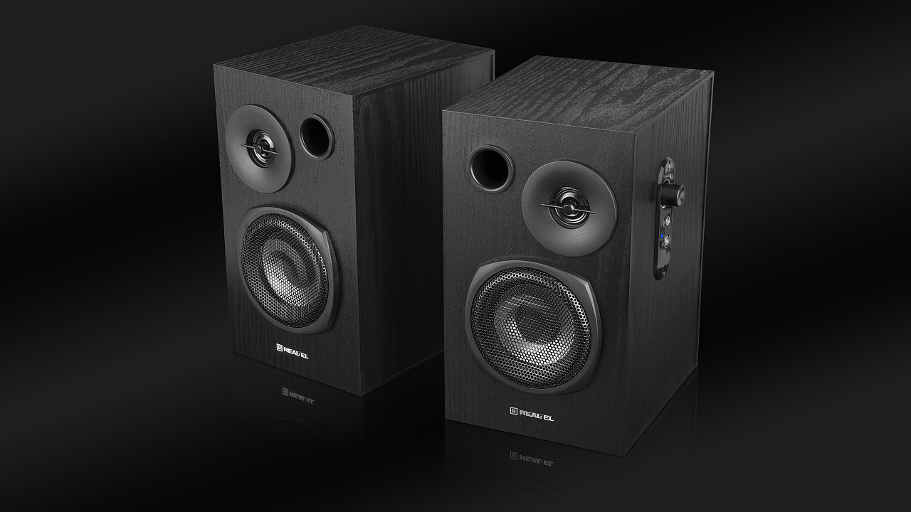 REAL-EL S-235 sound system features a compact, minimalist design that fits perfectly into a modern interior. The speakers are equipped with a built-in amplifier, acoustic and signal cables, allowing them to be connected to almost all audio sources.