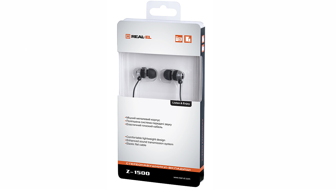 In-ear headphones REAL-EL Z-1500 are designed to work with PC sound cards and other systems compatible with them (portable players, computer game consoles, etc.).