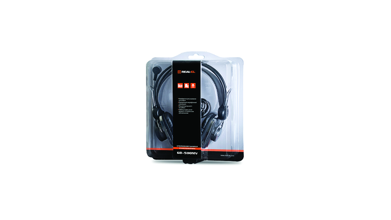 REAL-EL GD-500MV stereo headphones with microphone are designed for operation with mobile devices and other compatible systems. They can be also used in VoIP telephony, video conferencing, for speech recognition and learning foreign languages.