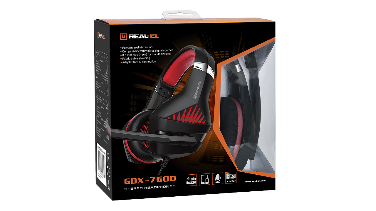Headphones with microphone REAL-EL GDX-7600 provide playback of powerful realistic sound, creating a feeling of total immersion in the game. Compatible with Media players and PCs.