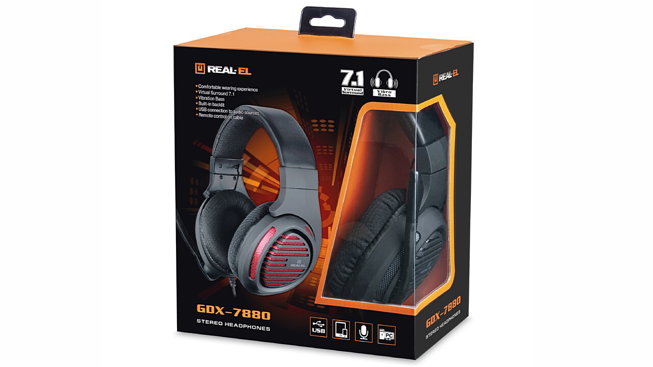 The REAL-EL GDX-7880 model has a stylish design with backlighting. Thanks to the "Virtual 7.1 Surround Sound" feature with built-in vibration bass, the sound becomes not only voluminous but also acquires a completely new color, maximally close to reality, creating a sense of full immersion in the game.