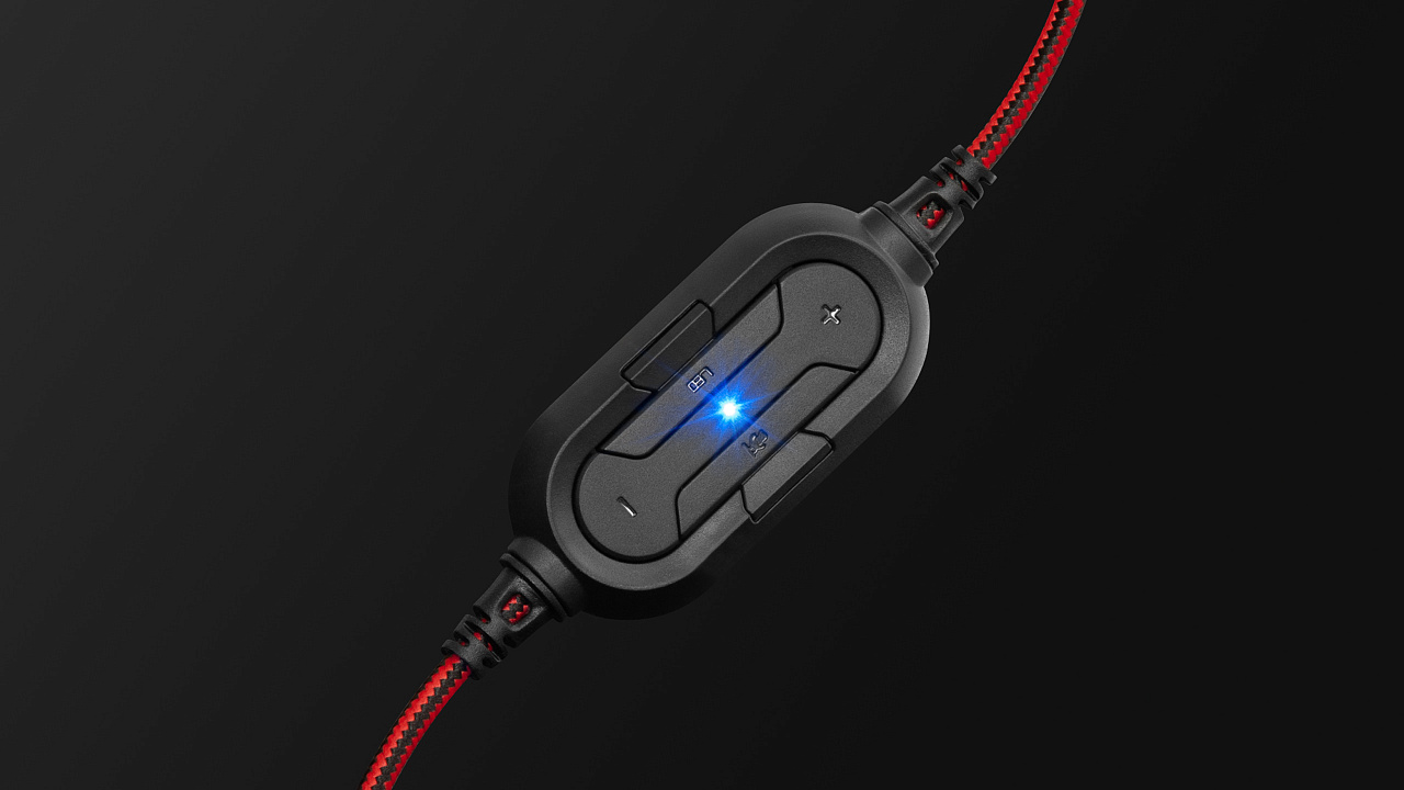 Durable construction, adjustable headband, and soft ear cushions ensure comfort and convenience during gaming and music listening. The built-in sound card and vibration bass reproduce virtual surround sound 7.1, transporting you to the center of the action where every explosion and step sounds incredibly realistic. Thanks to the powerful sound, you are not just playing — you live in the game and feel it. USB connection provides clear sound transmission and microphone signal, while the fabric cable braiding guarantees durability and reliability.