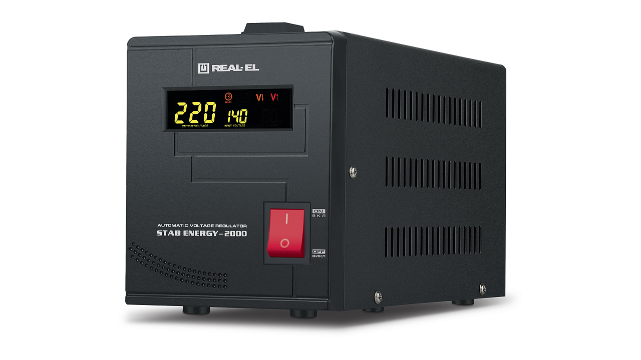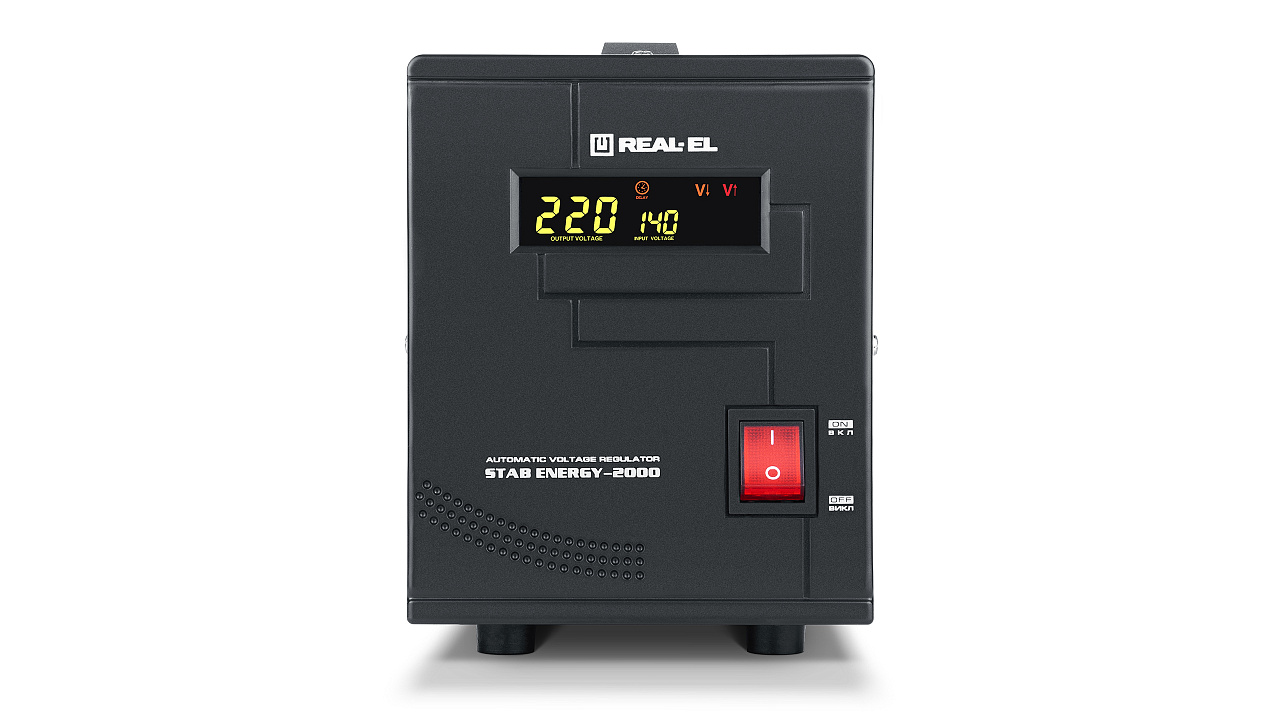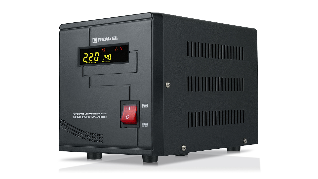 Voltage stabilizer REAL-EL STAB ENERGY-2000 is designed to provide high-quality and stable power supply for various consumers in conditions of significant and prolonged deviations of the electrical network voltage from the nominal value, protecting devices-consumers from overload, from the influence of high-frequency and impulse interference.