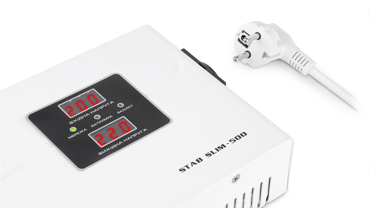 The REAL-EL STAB SLIM-500 voltage stabilizer is designed to provide high-quality and stable power supply to various consumers, protecting consumer devices from unacceptable voltage deviations, high-frequency, and impulse interferences.