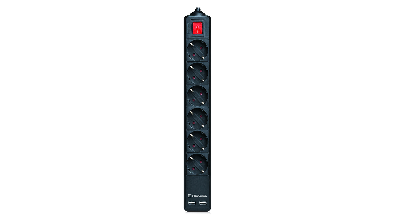 The REAL-EL RS-6 Protect USB network filter-extension cord is the perfect solution for modern needs of connecting electrical appliances, charging gadgets, and protection against high-voltage voltage impulses. The built-in USB charging device is suitable for mobile devices, making it a universal solution for any home or office. The filter is equipped with two USB ports, which is convenient and efficient, as it allows charging two devices simultaneously without occupying sockets with charging blocks. The extension cord has six sockets with grounding and protective shutters for additional safety. The general two-pole switch with a light indicator provides easy control and monitoring of the device's status. The cable is made of high-quality copper, and the housing is made of fire-resistant plastic.