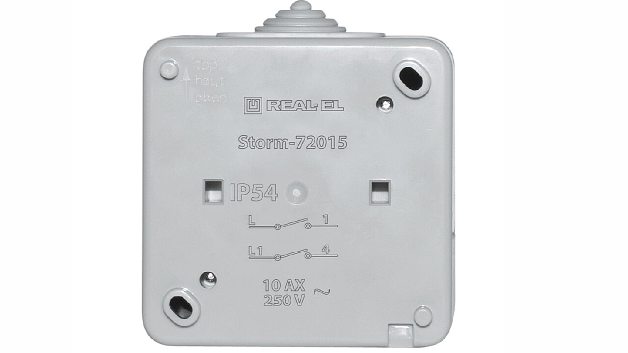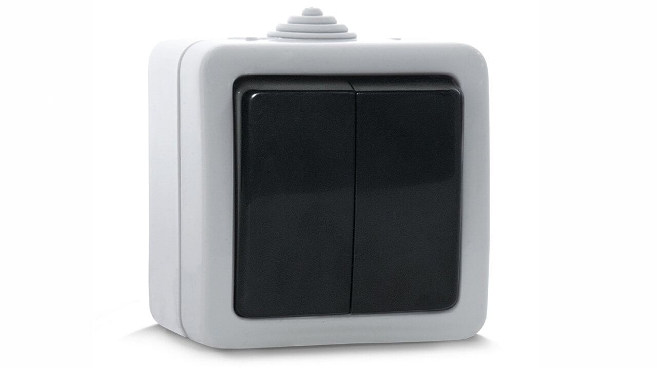 Double switch Storm-72015 for external installation is designed for switching electrical circuits. Ability to control two light sources. Dust and moisture protection rating - IP54.