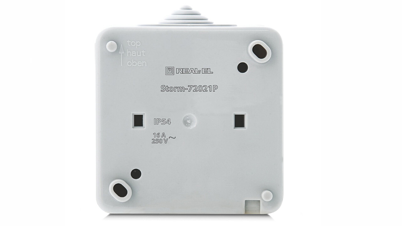 The socket with grounding and protective shutters Storm-72021P is intended for switching electrical circuits. The degree of protection against dust and moisture ingress is IP54.