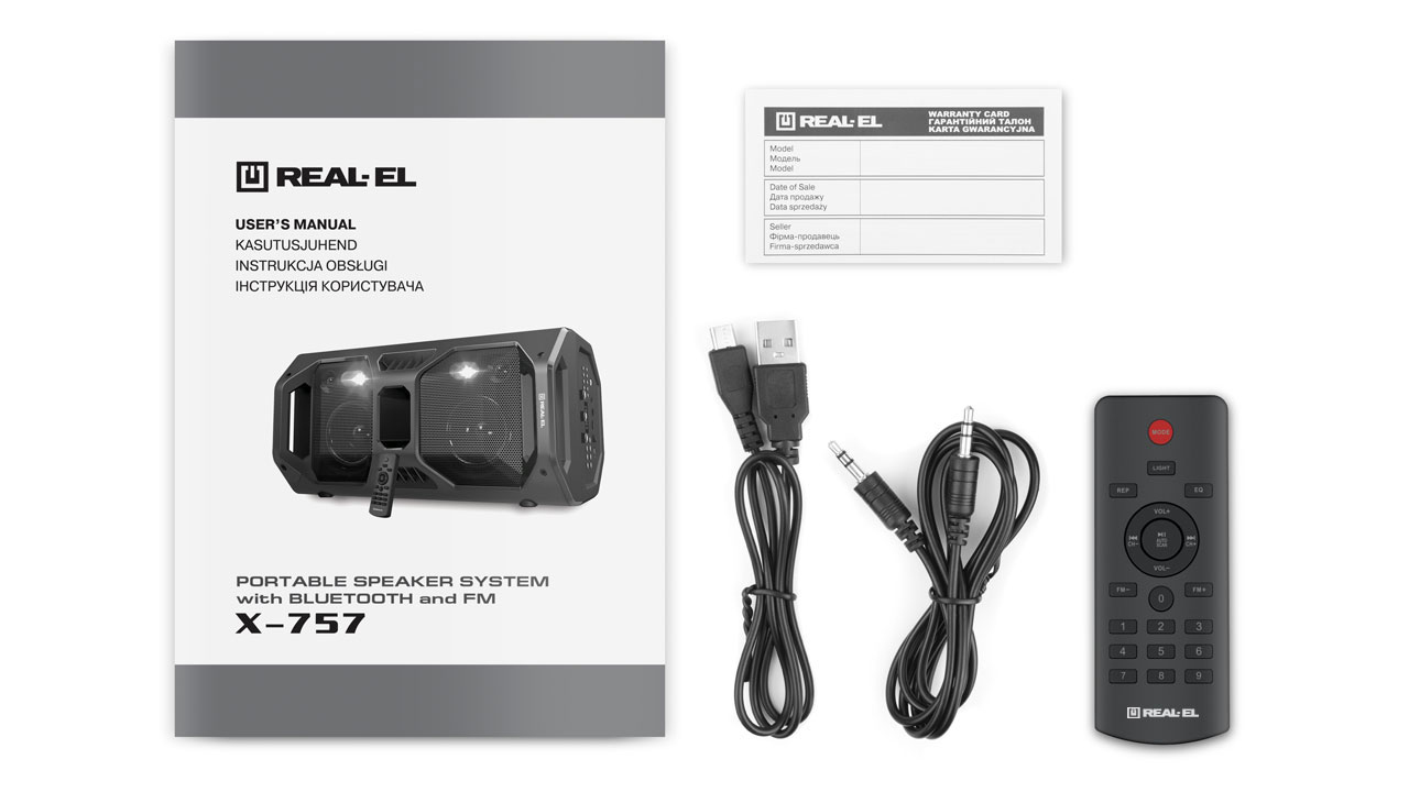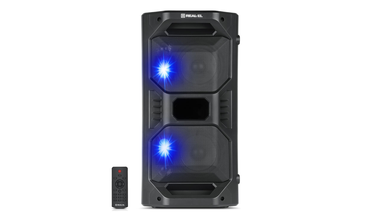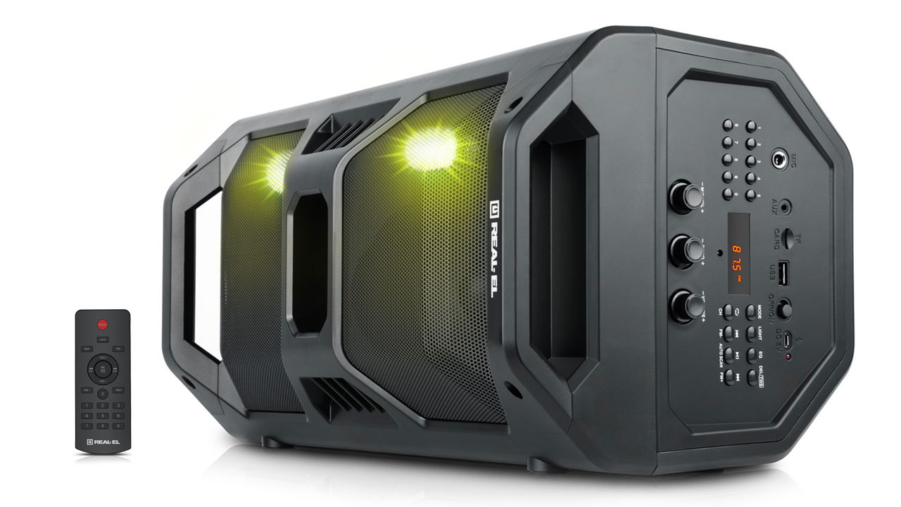 REAL-EL X-757 multimeedia kaasaskantav akustiline süsteem omab kaasaegset disaini RGB-valgustuse ja kvaliteetse heliga. Selle lai funktsionaalsus võimaldab muusikat kuulata, ühendades mobiilseadme, arvuti, televiisori, sülearvuti jne nii AUX väljundi kui ka Bluetoothi kaudu. USB ja Micro SD kaardi pesad võimaldavad kuulata audiofaile flash-mäluseadmetelt.