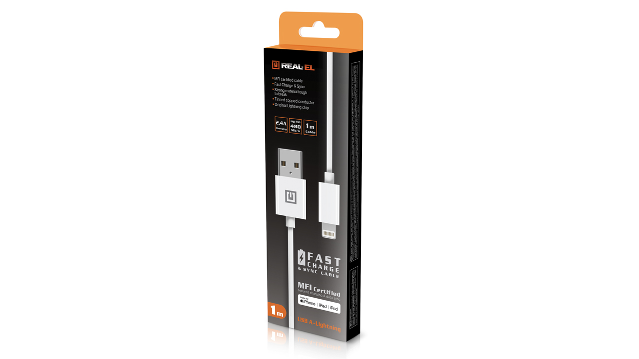 REAL-EL MFI USB A - Lightning TPE kaabel on valmistatud kvaliteetsetest materjalidest, ümbris on valmistatud termoplastilisest elastomeerist (TPE), mis ühendab endas materjali kvaliteedi minimaalse isolatsioonikihi paksusega, on tulekindel ja omab laiendatud töötemperatuuride vahemikku, samas kui originaalne kiip tagab ohutu ja usaldusväärse töö.