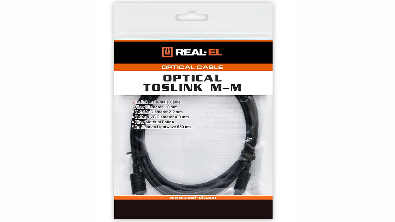 REAL-EL Optiline Toslink M-M optiline kaabel heliallikate ühendamiseks.