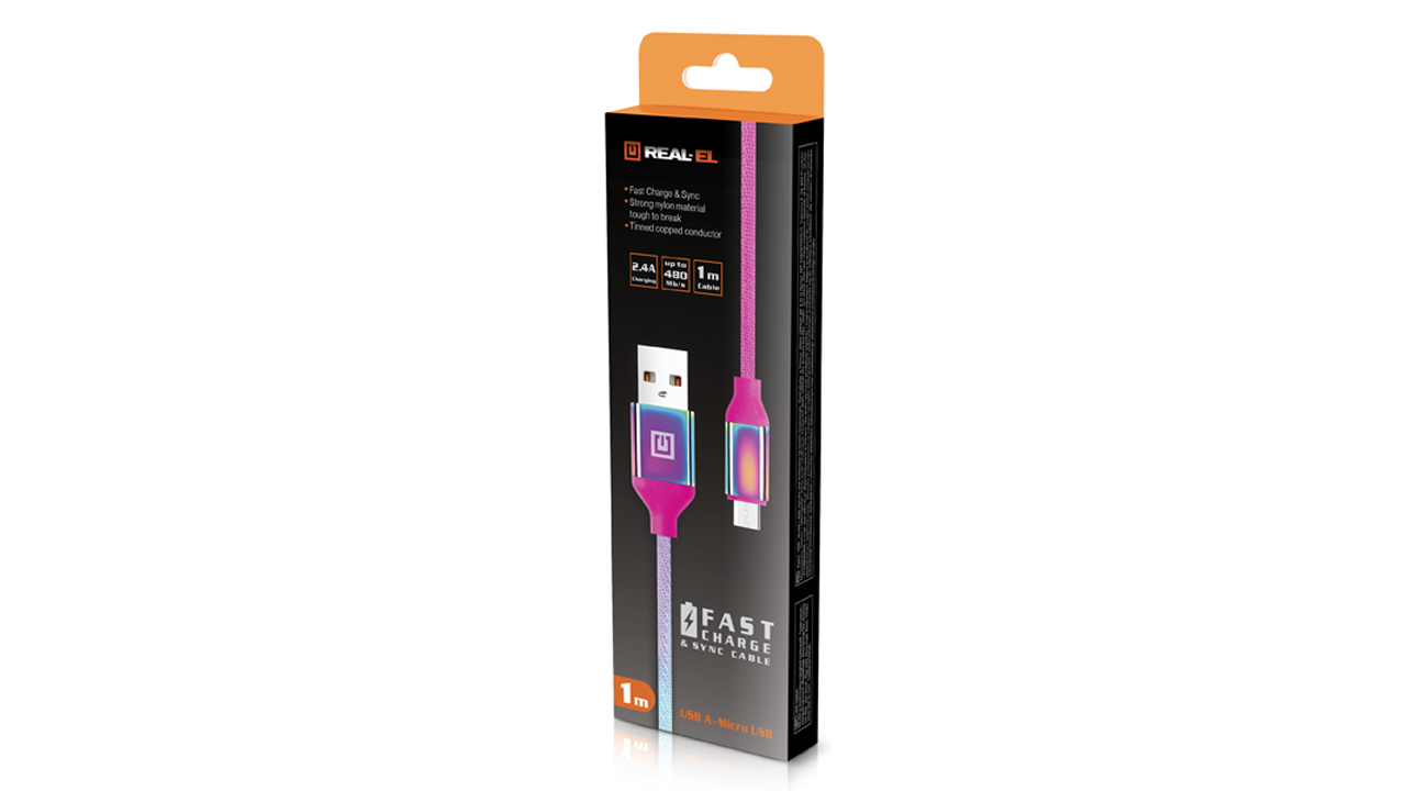 REAL-EL Premium USB A - Micro USB Rainbow kaabel on mõeldud digitaalsete seadmete ühendamiseks laadimiseks ja andmeedastuseks.