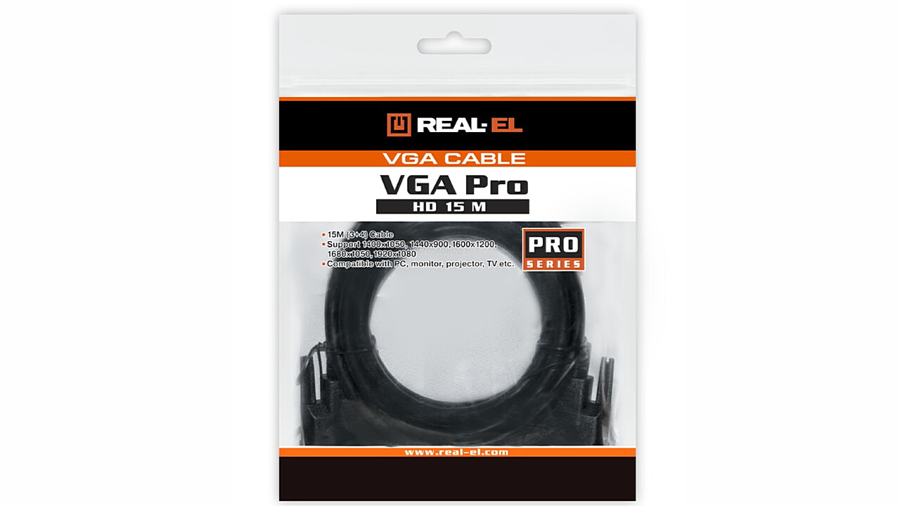 REAL-EL VGA HD15M-VGA HD15M kaabel on mõeldud arvutite, projektorite, televiisorite jms ühendamiseks.