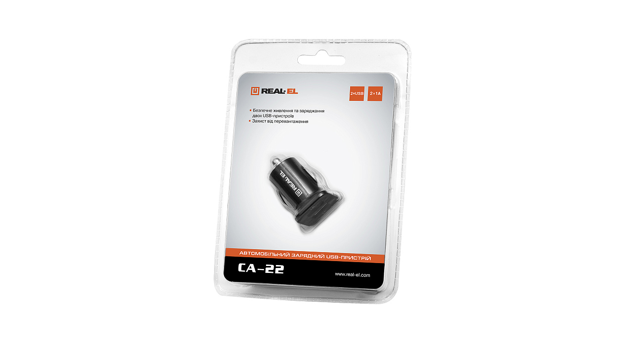 REAL-EL CA-22 auto USB-laadija kahe väljundiga on mõeldud kaasaskantavate seadmete (mobiiltelefonide, nutitelefonide, GPS-navigaatorite, MP3-mängijate, taskuarvutite, tahvelarvutite ja muude digitaalsete seadmete) aku toitmiseks ja laadimiseks läbi auto sigaretisüütaja pesa.