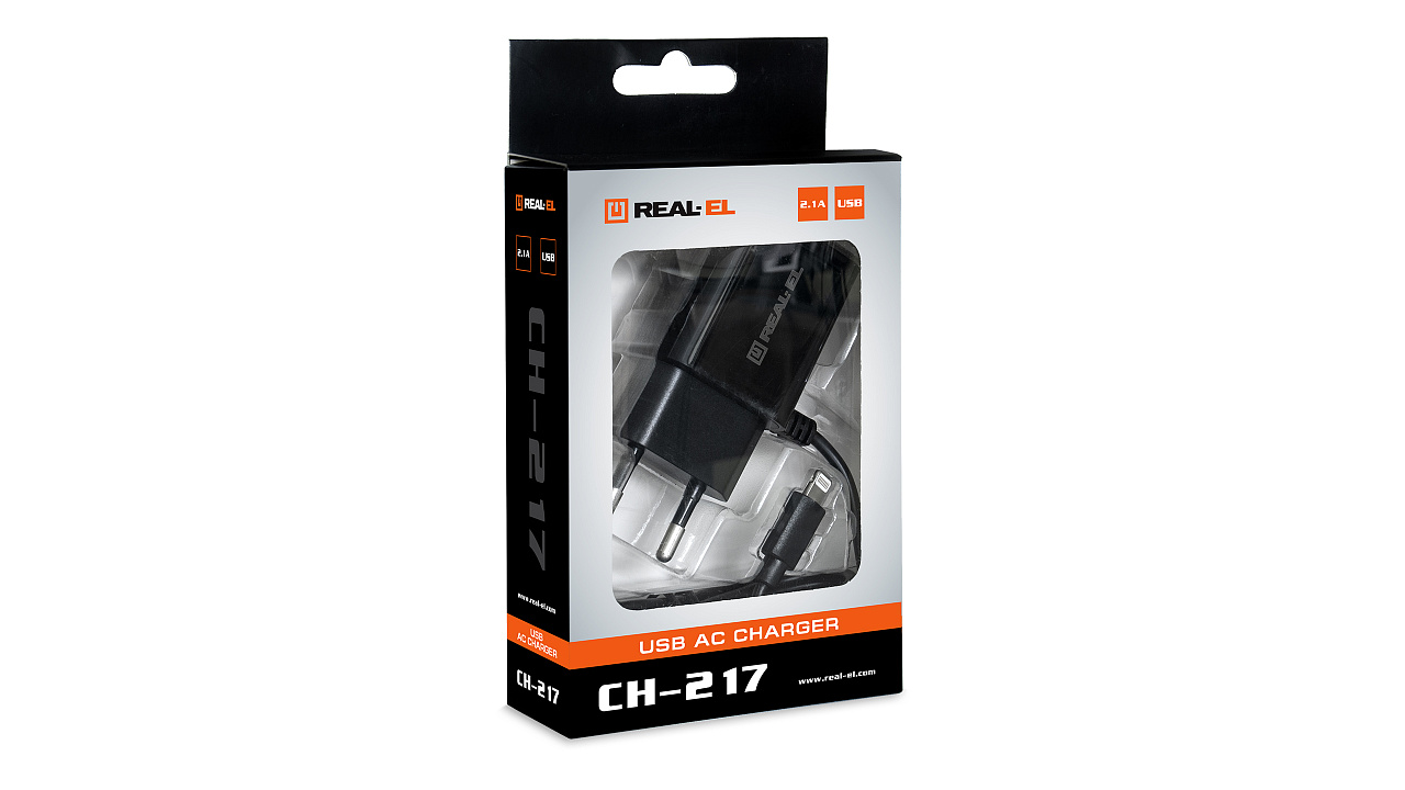 USB-võrgulaadija REAL-EL CH-217 on mõeldud kaasaskantavate seadmete (mobiiltelefonid, nutitelefonid, MP3-mängijad, PDA-d, tahvelarvutid ja muud digitaalsed seadmed) akude laadimiseks ning kaasaskantava akustika toitmiseks koduvõrgust.