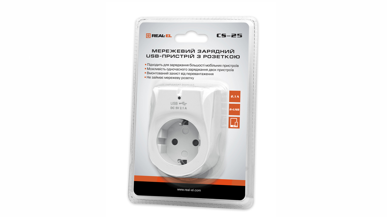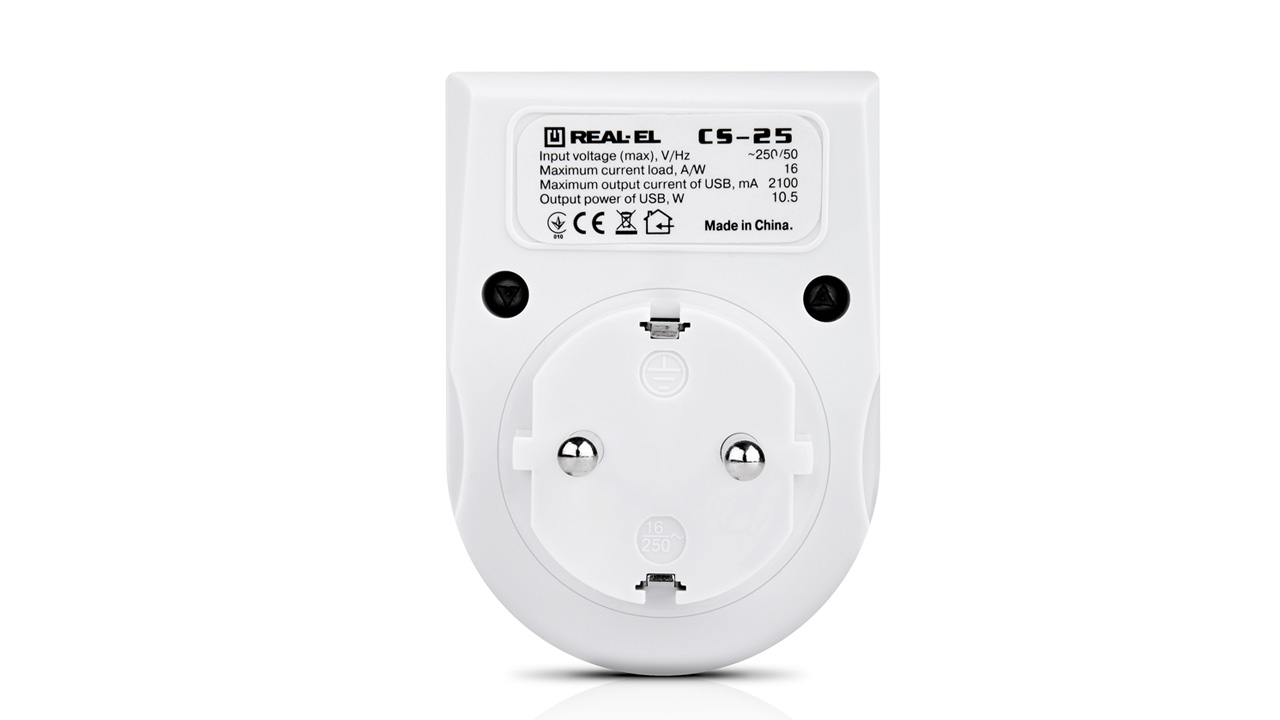 Võrgu USB-laadimisseade koos pistikupesaga REAL-EL CS-25 on mõeldud akude laadimiseks või kaasaskantavate seadmete toitmiseks koduvõrgust ja selle samaaegseks kasutamiseks jõupistikupesana.
