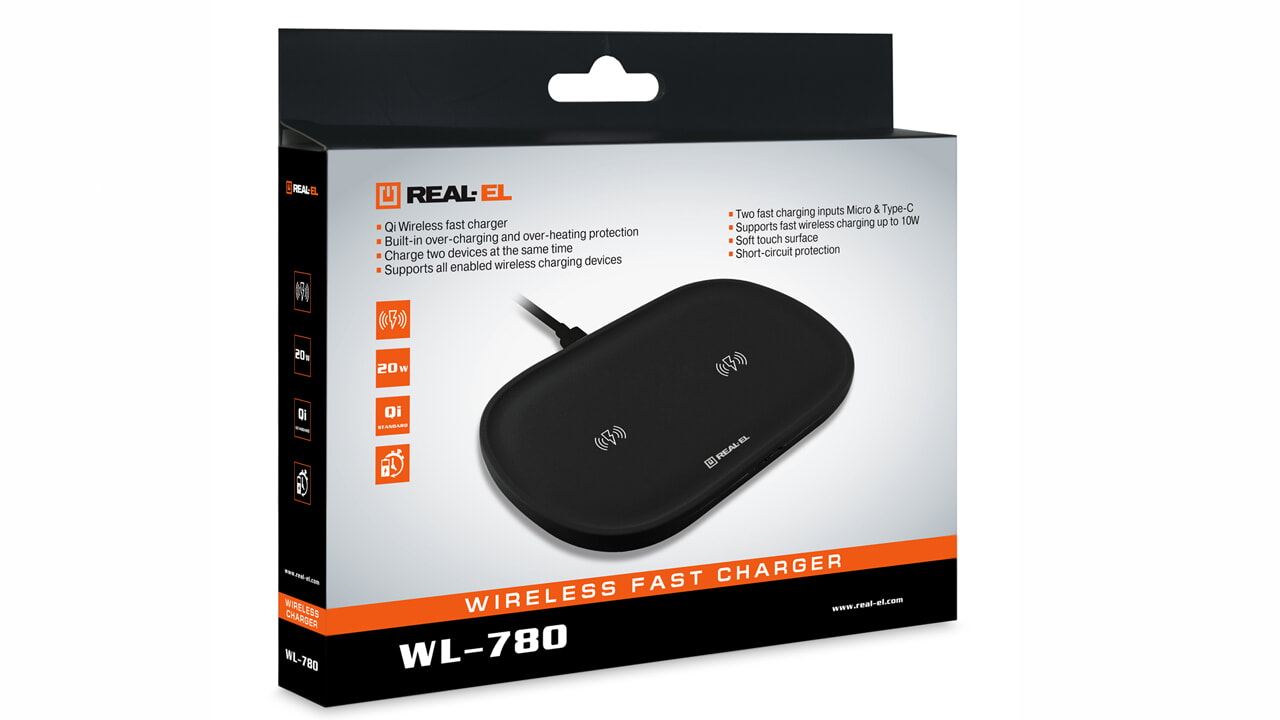 REAL-EL WL-780 traadita laadija on mõeldud seadmete aku toitmiseks ja laadimiseks, mis toetavad traadita laadimise tehnoloogiat.