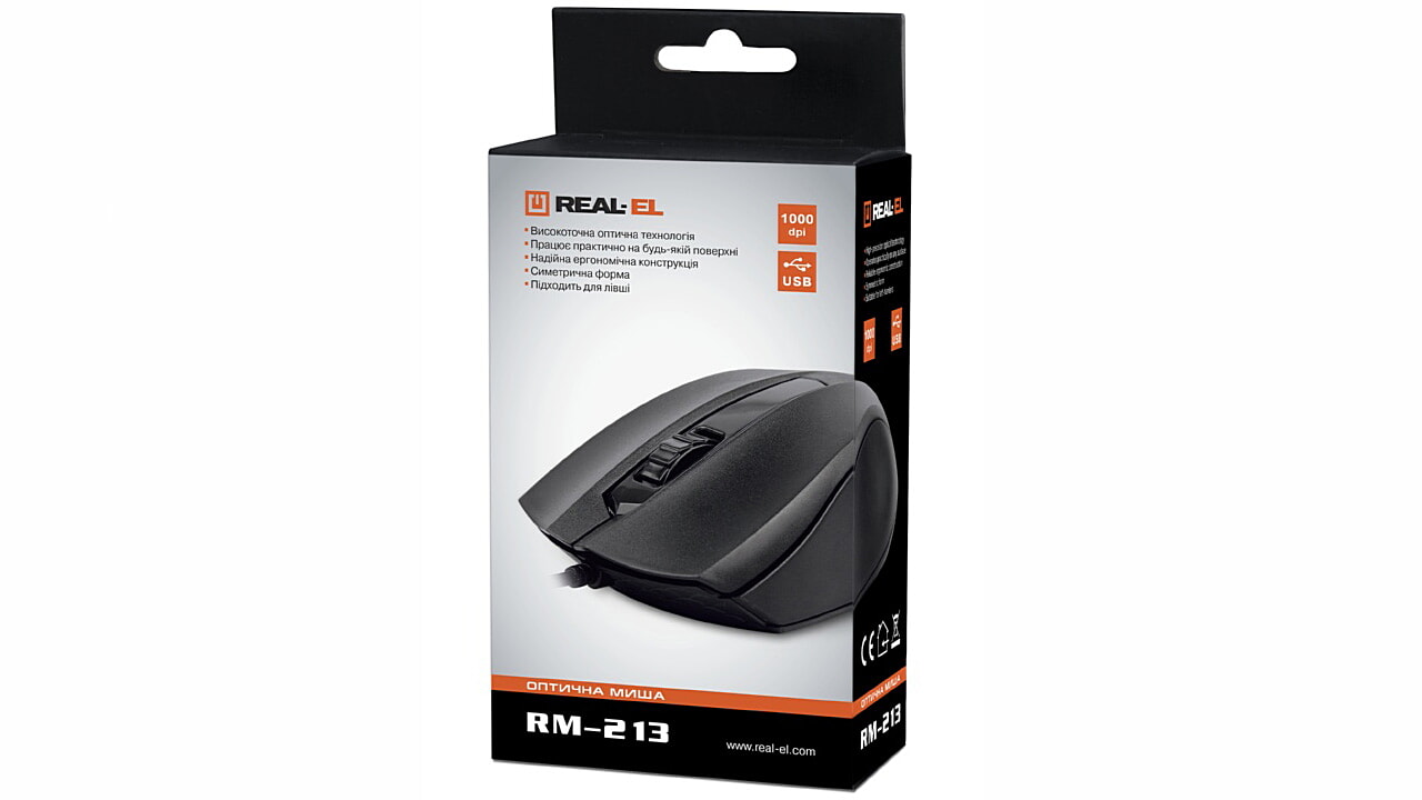 Kõrgtäpne optiline tehnoloogia võimaldab REAL-EL RM-213 manipulaatoril töötada peaaegu igal pinnal. Omadused: 2 + 1 nuppu, usaldusväärne ergonoomiline konstruktsioon, kereratas, USB-liides, sobib vasakukäelistele.