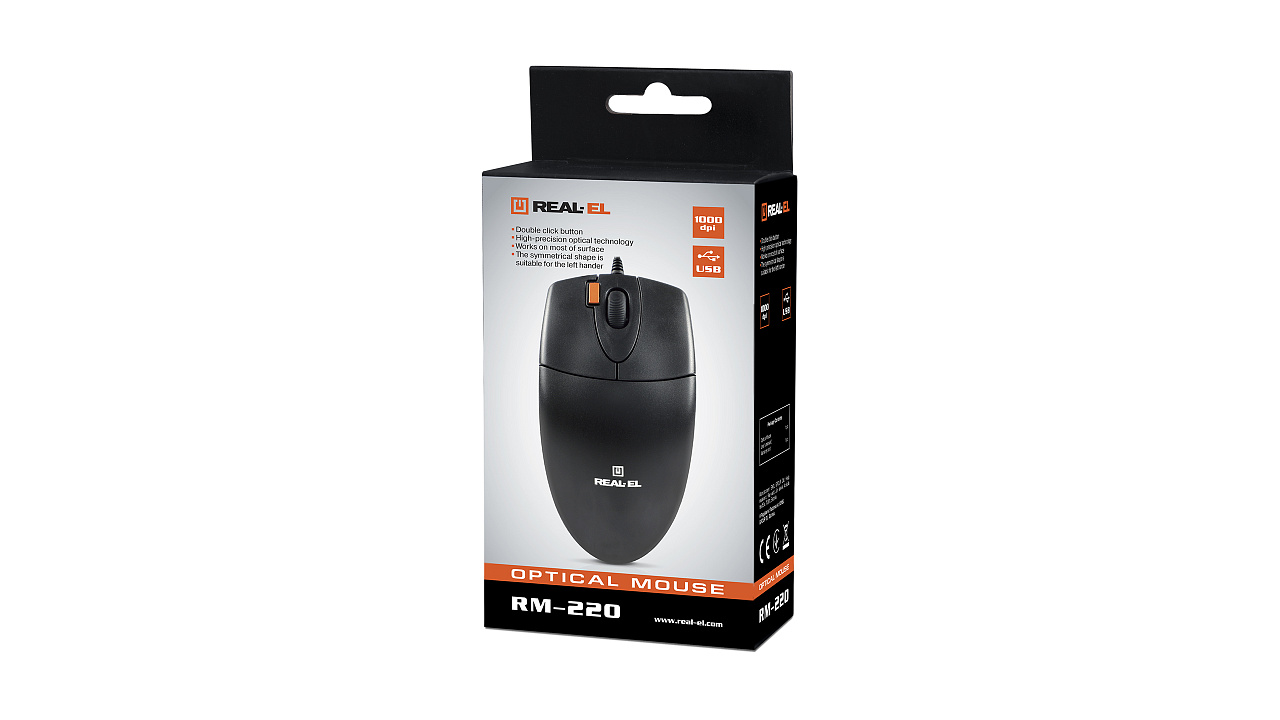 Kõrgtäpne optiline tehnoloogia võimaldab REAL-EL RM-250 manipulaatoril töötada praktiliselt igal pinnal. Omadused: 2 + 1 nupud, kerimisrull, USB- ja PS/2-liidesed, manipulaatori loomulik kuju on käele mugav.