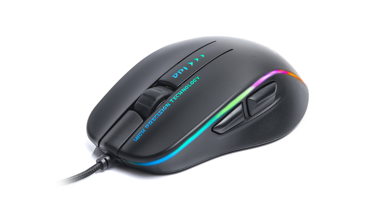 Mängusari pic USB ühendus pic Automaatse draiverite installimise tehnoloogia pic Kaabli pikkus: 1.8 m pic Mitmevärviline taustavalgustus pic Eraldusvõime muutmise võimalus pic Jälgimiskiirus 30 tolli sekundis pic Kaadrisagedus: 6000/sek pic Maksimaalne eraldusvõime 4800 dpi pic