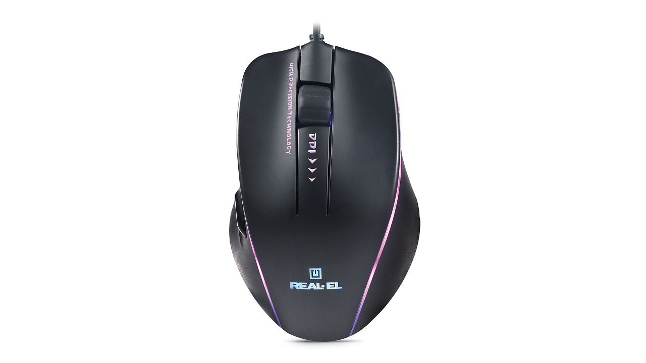 Kõrgtäpne optiline tehnoloogia võimaldab mänguhiires REAL-EL RM-747 praktiliselt töötada igal pinnal. Omadused: kõrge töökiirus, 5 + 1 nuppu, kererull, 2 navigeerimisnuppu "edasi" ja "tagasi", DPI eraldusvõime lüliti, sisseehitatud valgustus, 20 g kaalu reguleerimine.