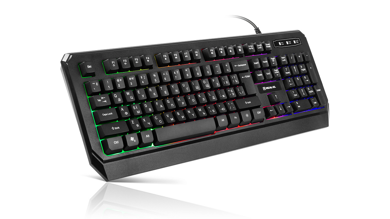 REAL-EL Comfort 7001 Backlit multimeediumklaviatuuri eripäraks on klahvide mitmevärviline taustavalgustus, Winlock-funktsioon koos spetsiaalse valgusindikaatoriga, mängimisvõimalus, mugav pehme klahvide kasutamine.