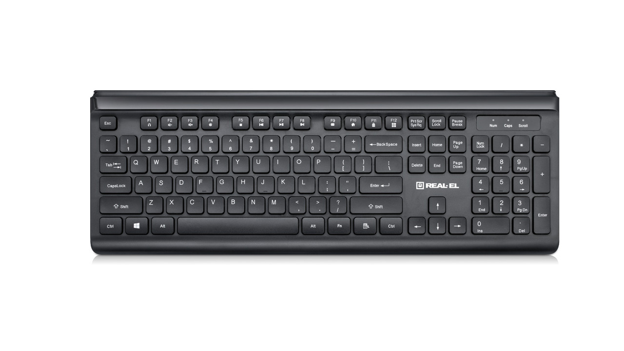 Standardne klaviatuur REAL-EL Comfort 7085 EN on varustatud USB-liidesega. Selle paigaldamine toimub automaatselt pärast ühendamist personaalarvuti USB-pessa. Kõrgkvaliteetne membraan ja madalprofiilsed klahvid tagavad klahvide kerge ja pehme vajutuse. Mudel on hõlpsamaks kasutamiseks varustatud kiirjuurdepääsu klahviga lehitsejale.