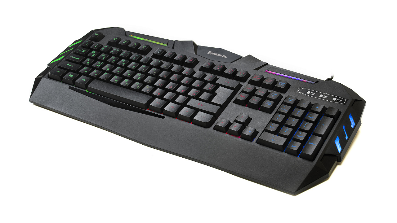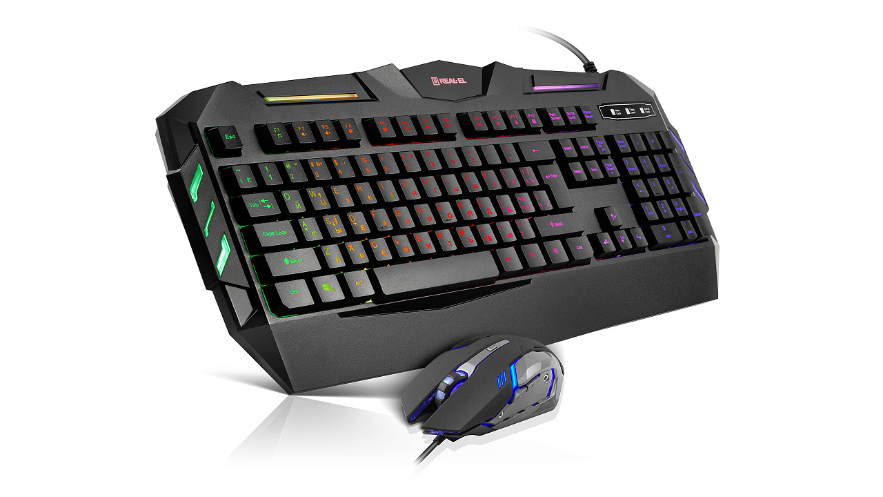 Mitmevärviline taustvalgustus, ergonoomiline mängukujundus, kiire juurdepääs multimeediale, kvaliteetne membraan, mugav, vaikne ja täpne klaviatuuri kasutamine, kummist sisekülje sisestus kerimisrattal, hiire maksimaalne eraldusvõime - 3200 dpi - omadused mängukomplekti klaviatuuri + hiir REAL-EL Gaming 9500 Kit Backlit.