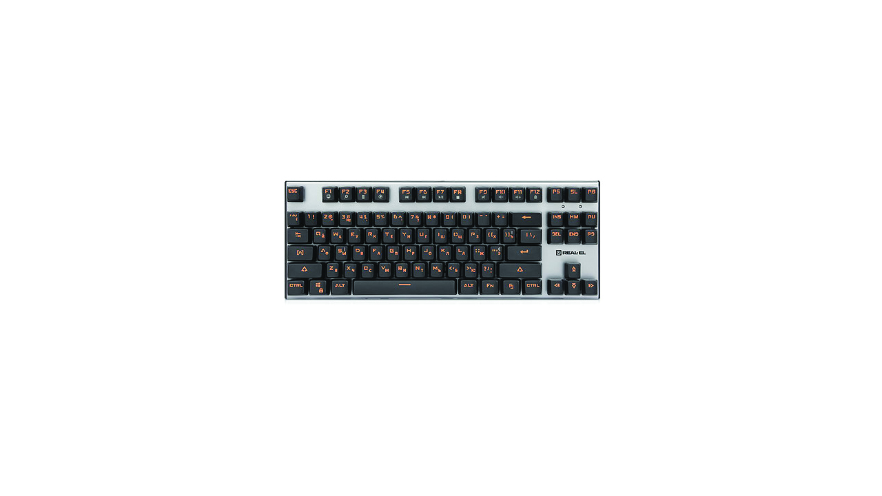 Klaviatuuri REAL-EL M07 eripäraks usaldusväärne mehaaniliste lülitite, kompaktne disainiga metallist alus, 12 Fn funktsiooniklahvi kiireks juurdepääsuks Windowsi, Internetti, multimeedia jne.